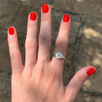 This engraved birth flower ring is made from pure sterling silver. Choose your birth flower and initials, and our jewellers will engrave them onto the bezel of the...