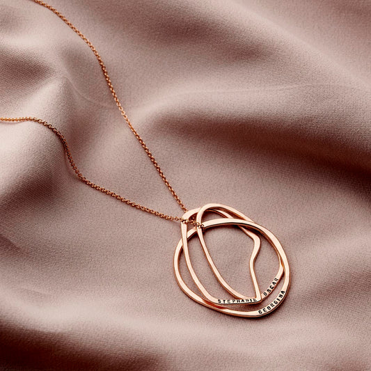 The personalised Russian Ring Necklace is a stylish way to wear your family close to your heart. #forthen #fornow #forever