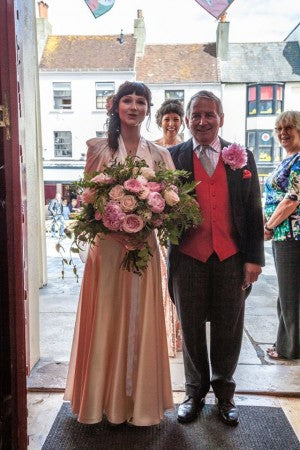 It's wedding central at the moment, and we've pretty much got one every weekend over the summer. But we're not complaining because we love a good wedding. In fact, our very own social media kid, Plum, tied the knot at the end of June here in central Brighton. We've been waiting for her to come back from honeymoon to ask her all about her wedding, see THE DRESS and get the lowdown on newly married life. Here's the skinny on one of the Brighton weddings of the year... Golly, you're properly married now. How does it feel? Lovely thanks. I'm a bit surprised but it does feel a bit different - even though my now-husband and I have been together 13 years! What was your dress like and where was it from? I'm a sucker for super glam vintage, so my dress was adapted from a 1930s inspired pattern from a range available from the heavenly Hope & Harlequin (which is right next door to our very own Posh Totty Designs shop on Brighton's Sydney Street). I'm great friends with the girls at Hope & Harlequin; my friend Sarah Morrell makes their made-to-order bridal gowns so it was an honour to have her make my dress for me. I chose a very pale pink, lightweight satin. It was amazing to wear. My 1930s inspired satin gown and cape (hiding behind my amazing flowers!) What about your shoes? I'm super lucky: I've got a clutch of really creative friends, and one of them is a footwear designer. She's only just started out on her own, so she's developing her techniques and building her workshop up (while juggling two babies at the same time). She handmade me the most awesome pair of shoes, which although high, stayed on my feet all day and into the night. I wanted a Terry De Havilland look, and as a big Bowie fan, I wanted to incorporate a tribute to the man himself. So she came up with these. The heels and platform are coarse glitter. They are epic. My super epic David Bowie inspired shoes... Check out the bolt across the shoes! Where did you get married? Although neither myself or my husband are from Brighton (that'll be Wales and Cornwall respectively), we wanted to host our wedding here as anything else just wouldn't have been 'us'. We opted for a non-denomination ceremony at the Unitarian Church in the North Laine, and had our reception at the awesome Fabrica in the Lanes. Fabrica is a decommissioned flint-clad church which was built at the end of the 19th century. These days it's an art gallery predominantly, but it's the most amazing place to throw a wedding party. My dad gave his speech from the old pulpit and our cake sat on top of the old marble font. Just hitched and walking back down the aisle of the Unitarian Church in Brighton Did you have bridesmaids? I had my two younger sisters, my best and oldest friend, and my five-year-old niece. I put the grown up girls in Hollywood style champagne-coloured floor length sequin gowns, and my niece wore a very obviously pretty pink lace and glittery tulle dress with little butterfly shaped sandals. I gifted them all a Posh Totty Designs Personalised Mini Message Necklace each as a thank you... My niece wearing her Personalised Mini Message Necklace My husband's groomsmen all received Posh Totty Designs gifts too. We gave his best man a pair of the Personalised Monogrammed Rectangle Cufflinks; my nephew, brother and brother-in-law all got a pair of PTD's Personalised Vintage Map Cufflinks; and the Craft department here very kindly made us a couple of pairs of bespoke cufflinks for the others. Here's our friend Simon 'Sci5' modelling his... One of our groomsmen's bespoke Posh Totty Designs cufflinks Personalised Monogrammed Rectangle Cufflinks Who did your flowers? A friend of mine who's based in Essex. She started her florist business, Bohemian Wild and Beautiful Blooms, in the winter just gone but already has a full diary. Her arrangements are to die for. I'm a huge fan of unstructured, uncontrived flowers that err on the slightly wild looking side. That's precisely what my friend does. I took inspiration from a photo of my grandfather at a wedding in India back in the 1930s: the bride's bouquet was nothing short of a small jungle! I had peonies, David Austen roses, cornflowers, hydraengas, Delphiniums, lavender, ivy, ferns, ranunculus and anemones. Our friend Alex did a beautiful reading at the ceremony. Alex also works for Posh Totty Designs in the shipping and logistics department! PTD was everywhere at our wedding ;) Did you have an amazing party after the ceremony? It was terrific! We walked from the church to Fabrica and kicked off the evening with champagne and canapes, and then had a sit down supper with our 120 guests. The food was amazing. Both my husband and I are vegetarian, and Cashew Catering who are based in Lewes sepcialise in Veggie, Vegan and raw catering. We had a no-fish Nicoise salad to start; beer battered halloumi, potato dauphinoise and minted mushy peas for the main; and a dreamy combo of poached pear, salted caramel slice, chocolate brownie and sloe gin jelly for pudding. It was delicious. At around 11.30pm, we put out Cornish pasties for our guests, a tradition at weddings down in my homeland. Our guests loved that, and filled their pockets with as many as they could manage. We went for a 'naked cake', made by Cashew Catering. The bottom layer was carrot cake, the next Victoria sponge, the next chocolate, and it was topped off by a gluten free layer. We gifted each guest with a personalised candle as wedding favours (working for Posh Totty Designs while you're planning a wedding is brilliant!). The candles went down a storm. We had each one and its box printed up with our nicknames for each and every guest. We chose the Moroccan Rose scent for all the ladies, and Black Oud for the guys. Our candle wedding favours After dinner and speeches, two of our friends took it in turn to DJ. The dancefloor was alive the whole night! We had our first dance to an old song, but one that has a lot of meaning and history for us: 'This Will Be Our Year' 