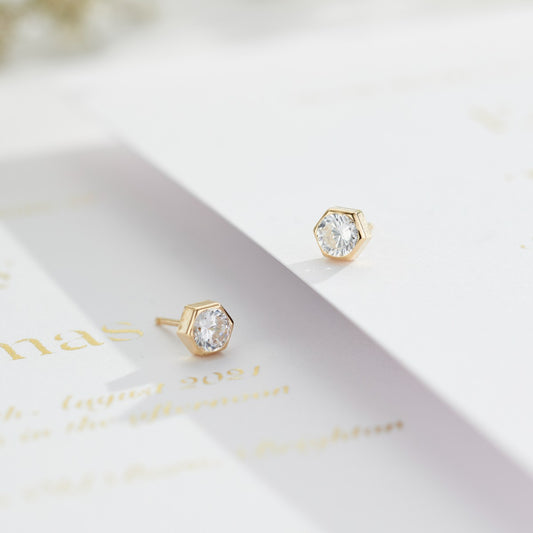 9ct Gold Cubic Zirconia Hexagon Stud Earrings