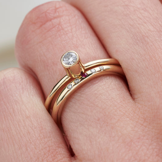 9ct Gold Birthstone & Diamond Personalised Wedding Ring