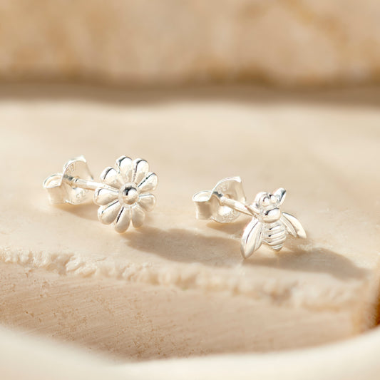 Flower & Bee Stud Earrings