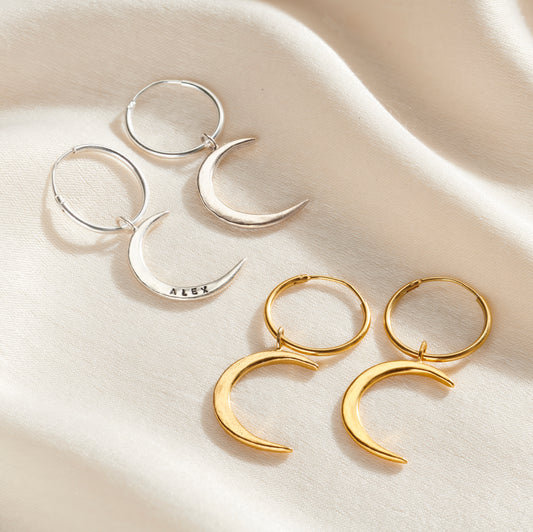 Crescent Moon Creole 9ct Gold Hoop Earrings