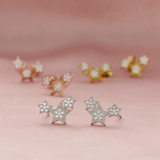 9ct Gold Cubic Zirconia Star Drop Earrings