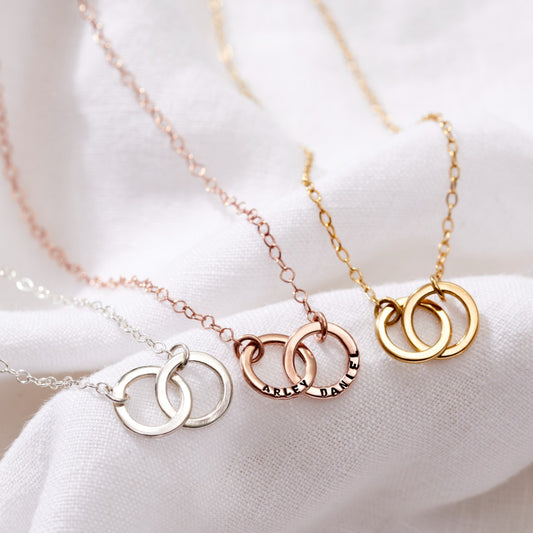 Personalised 9ct Gold Mini Two Ring Russian Necklace