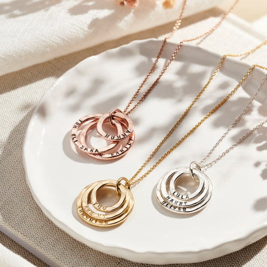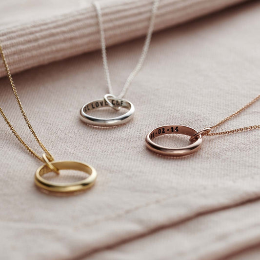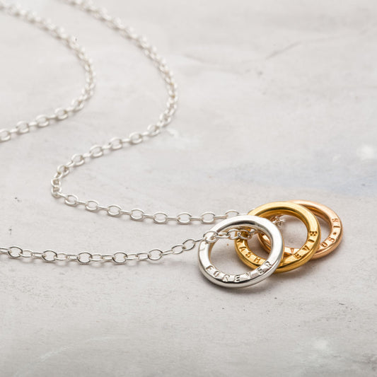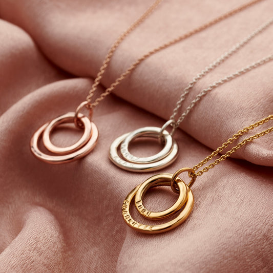 Personalised Mixed 9ct Gold Two Ring Russian Necklace