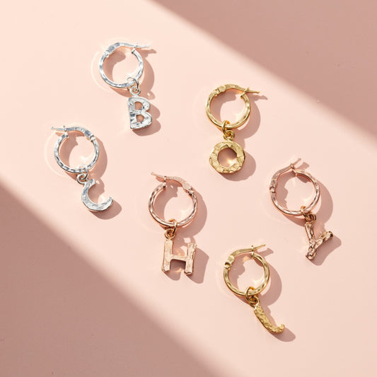 Textured Letter Charm Hoop Earrings