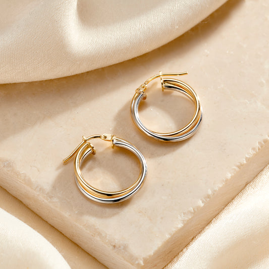Interlinking Mixed 9ct Gold Hoop Creole Earrings