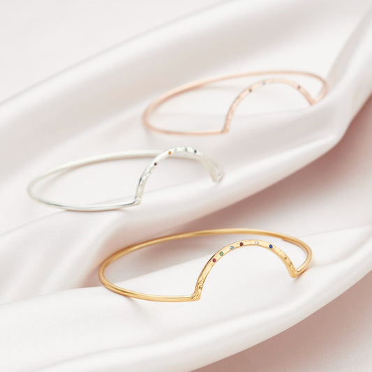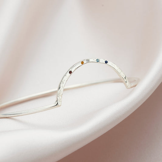 Personalised Textured Confetti Birthstone Cuff Bangle