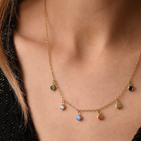 Confetti Birthstone Mini Two Ring Russian Necklace