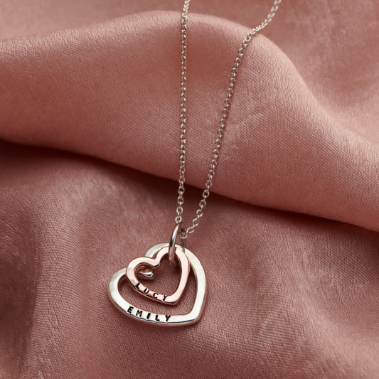 Personalised Silver & 9ct Gold Family Heart Necklace