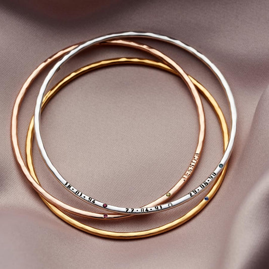 Personalised Textured Confetti Birthstone Cuff Bangle
