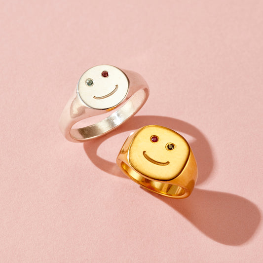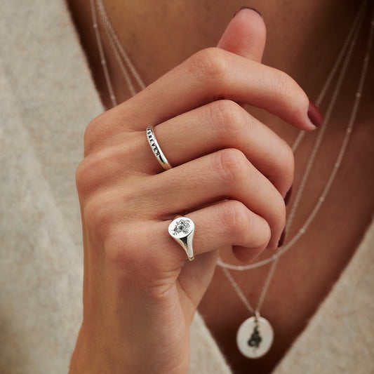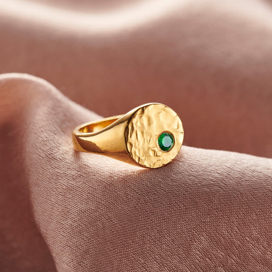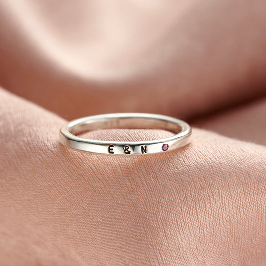 Personalised Rectangle Confetti Birthstone Signet Ring