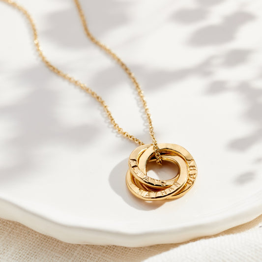 Personalised 9ct Gold Mini Two Ring Russian Necklace