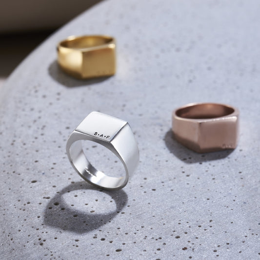 Personalised Rectangle Confetti Birthstone Signet Ring
