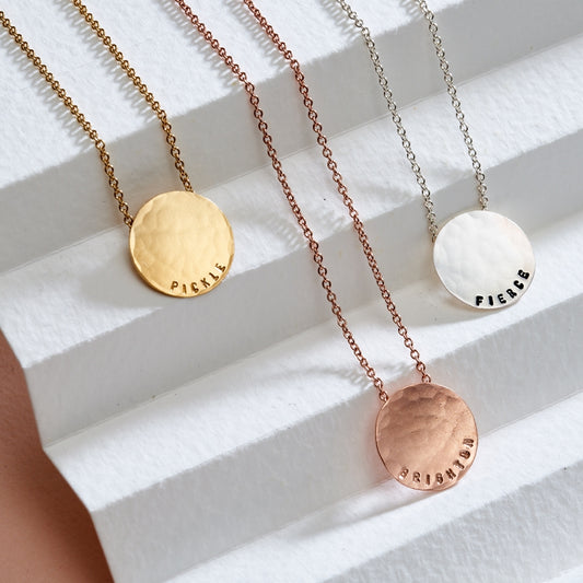 Personalised Medium Hammered Disc Necklace