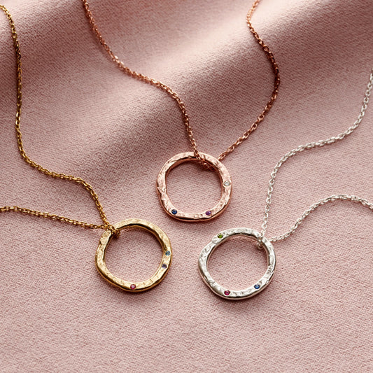 Personalised Double Hoop Names Confetti Birthstone Necklace
