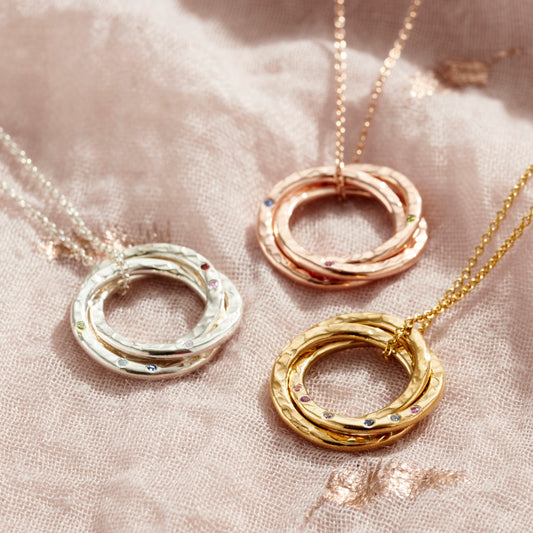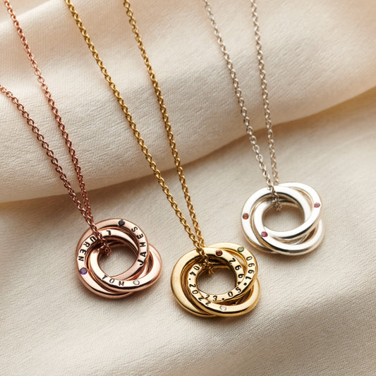 Mini Personalised Two Ring Birthstone Russian Necklace