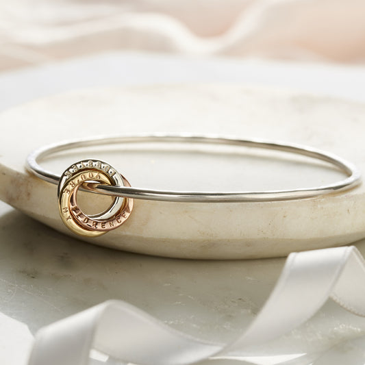 Personalised 9ct Mixed Gold & Silver Russian Ring Bangle