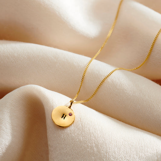 9ct Gold Mini Disc Initial Birthstone Necklace