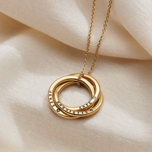 Personalised 9ct Gold Mini Two Ring Russian Necklace