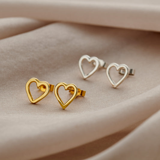 9ct Gold Open Mini Heart Stud Earrings
