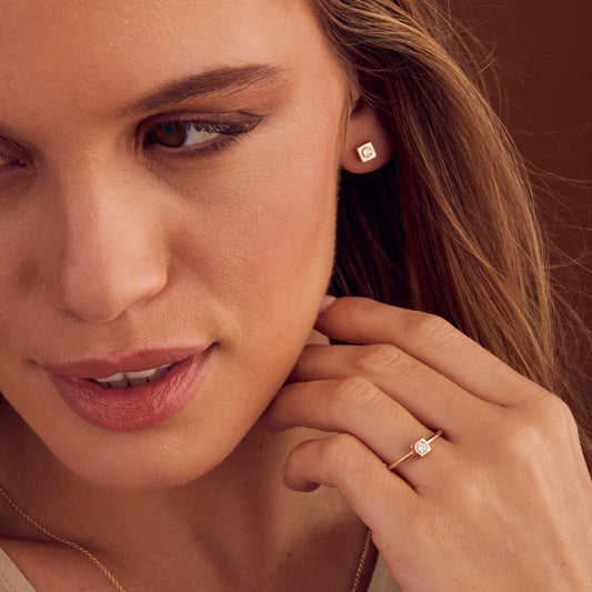 9ct Gold Cubic Zirconia Hexagon Stud Earrings
