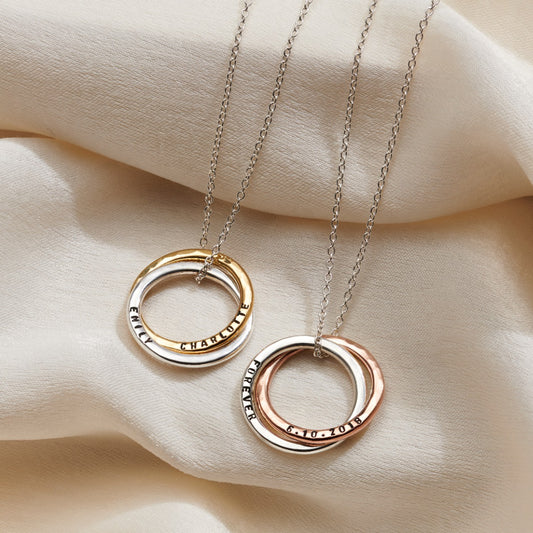 Personalised Mixed Metal Two Ring Russian Necklace