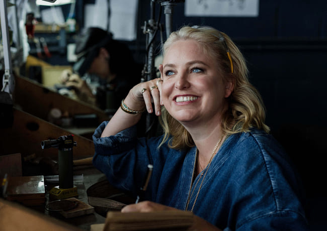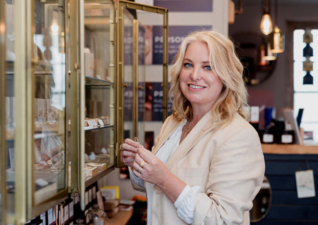 Fast forward, I now live with my husband and two young boys in diverse, creative Brighton. Fuelled by my passion to make gift-giving have real meaning, I have managed to grow Posh Totty Designs into a destination company for personalised gifts. We're proud to say that PTD now runs the largest jewellery workshop in the south and employs a predominantly female team of 50 fantastic staff (including my husband). We have three shops, our Flagship store in Brighton, one in Islington, London and a consession in Elys of Wimbledon. We offer a same-day personalisation service in our shops and hand make every design in our workshop. We also launched our first concession in a department store in Wimbledon and designed and made two personalisation stations that we take on tour around the country to Key destinations. Every new design is still worked on by me, and every order is made very much in the same way as I started; handmade and hand-stamped to order.