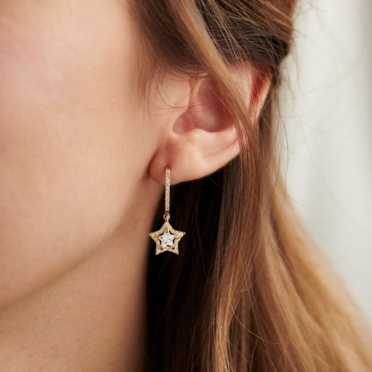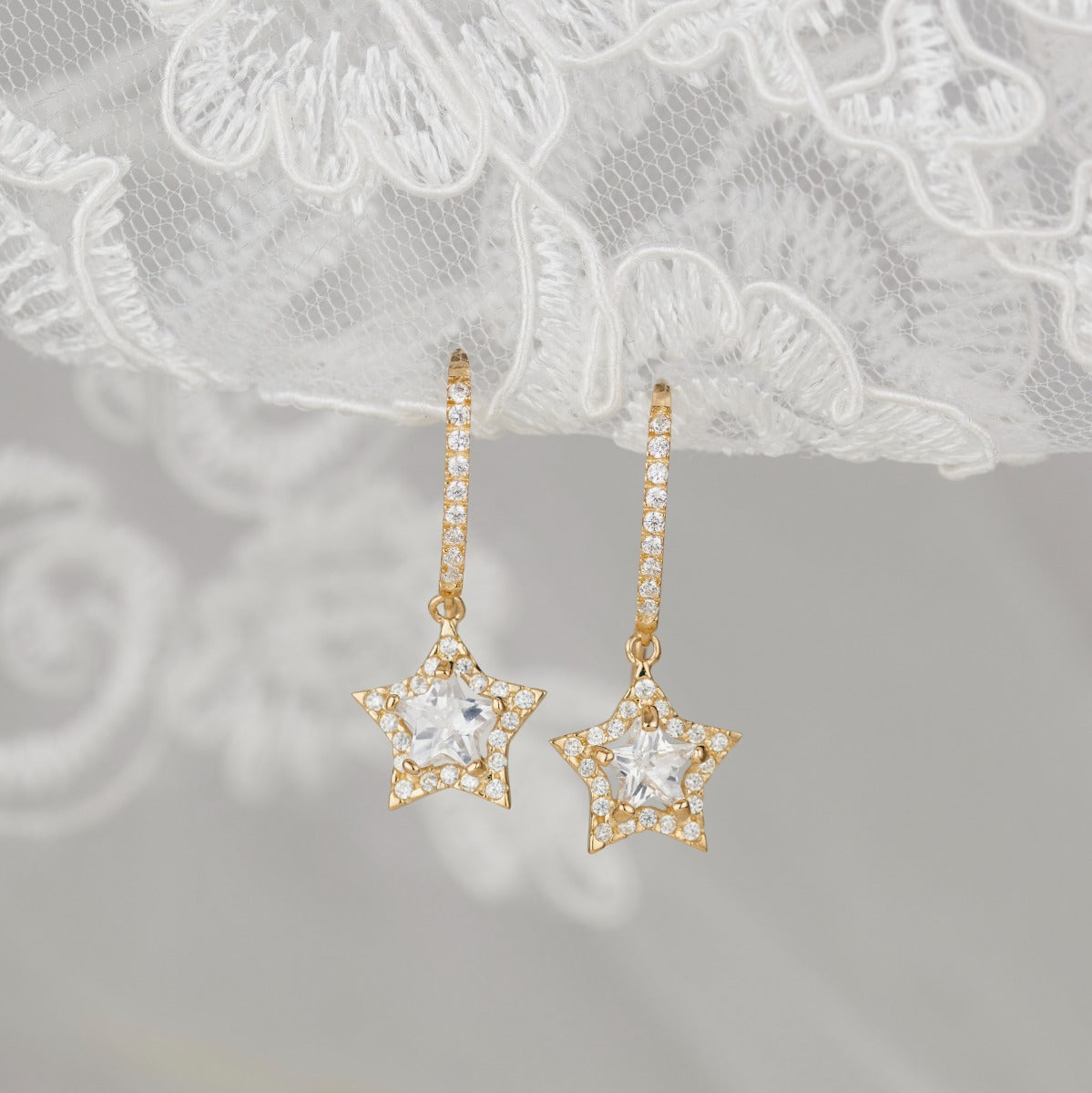 9ct Gold Cubic Zirconia Star Drop Earrings