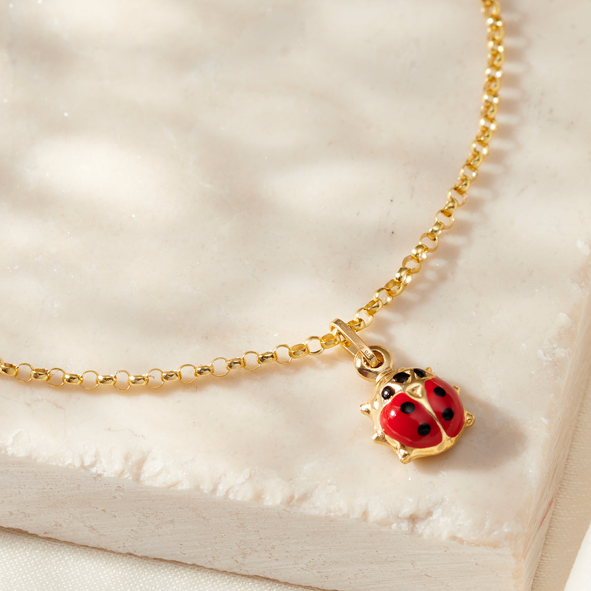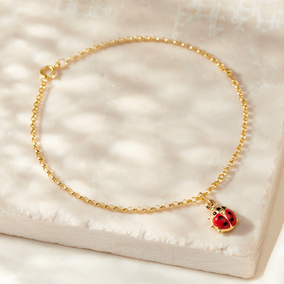 This gorgeous gold charm bracelet is the perfect gift for a loved one. Made from 9ct Yellow Gold the bracelet features a unique ladybird charm that is inlaid with colourful red and black enamel. The charm is...