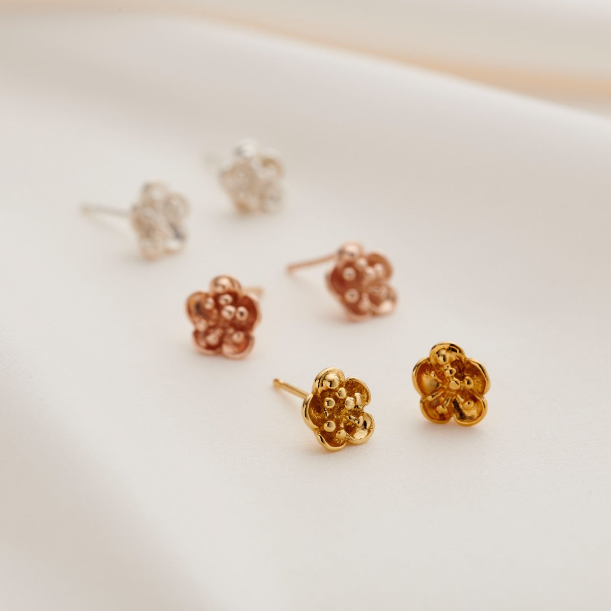 The 18ct Gold Flower Stud Earrings add a beautiful finishing touch to any outfit. Handcrafted from solid 18ct rose gold, these beauties are intricately detailed and are a must for anyone who appreciates flor...