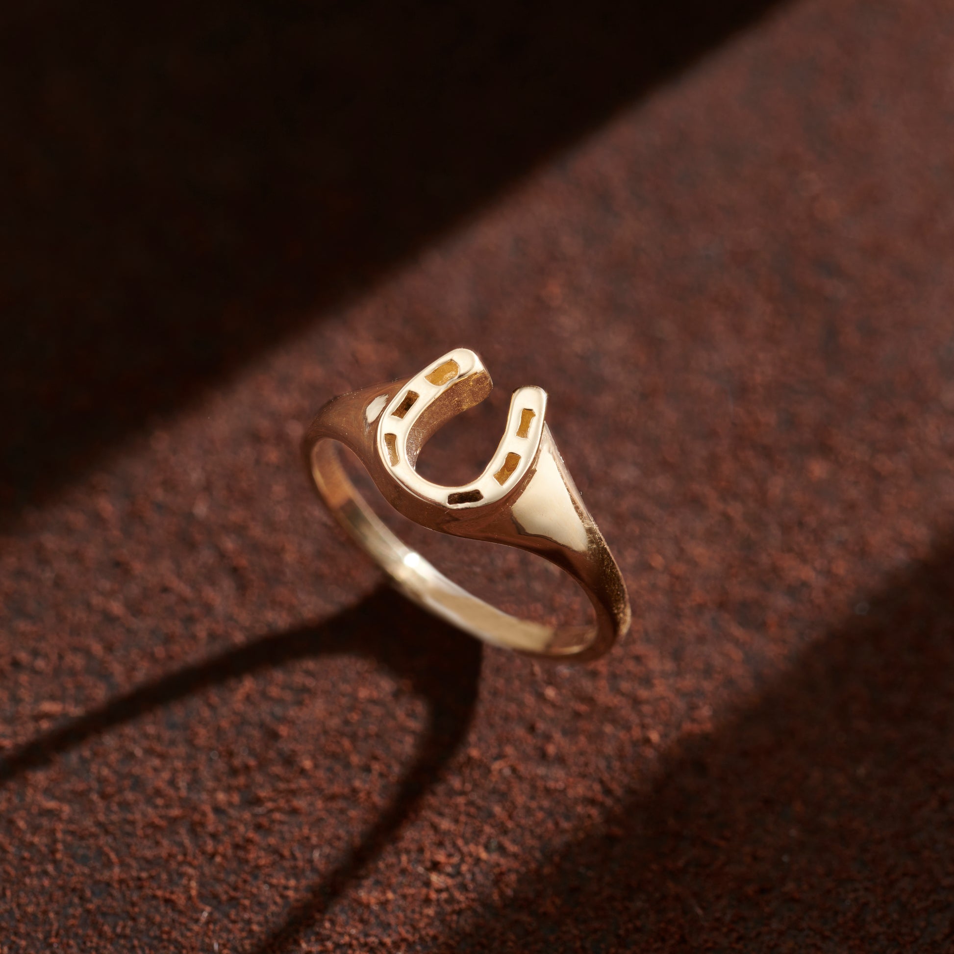 9ct Gold Stay Lucky Horseshoe Signet Ring