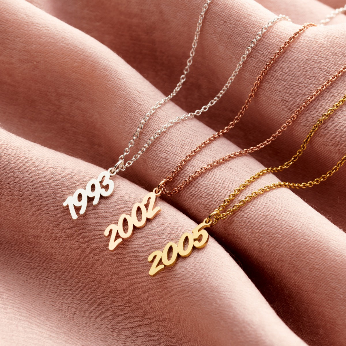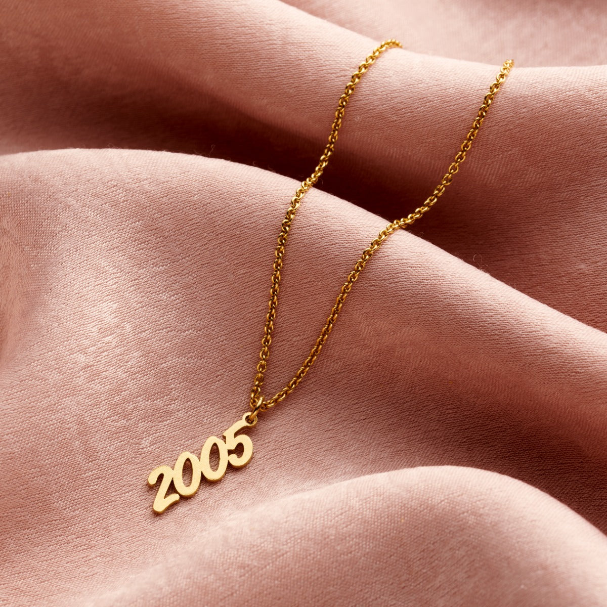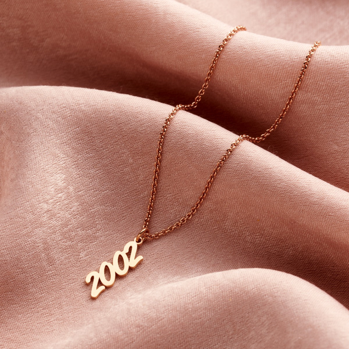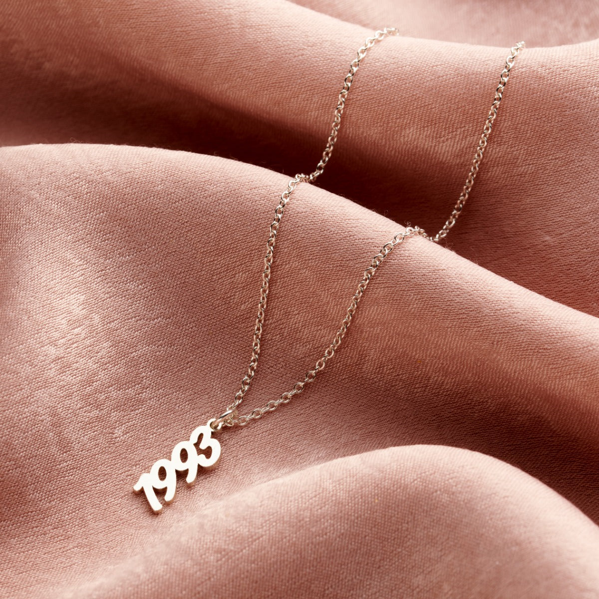 This beautiful necklace is made in our Brighton workshop by our expert jewellers. This design features a dainty charm personalised with your chosen year and cut from Sterling Silver and suspended from our cl...