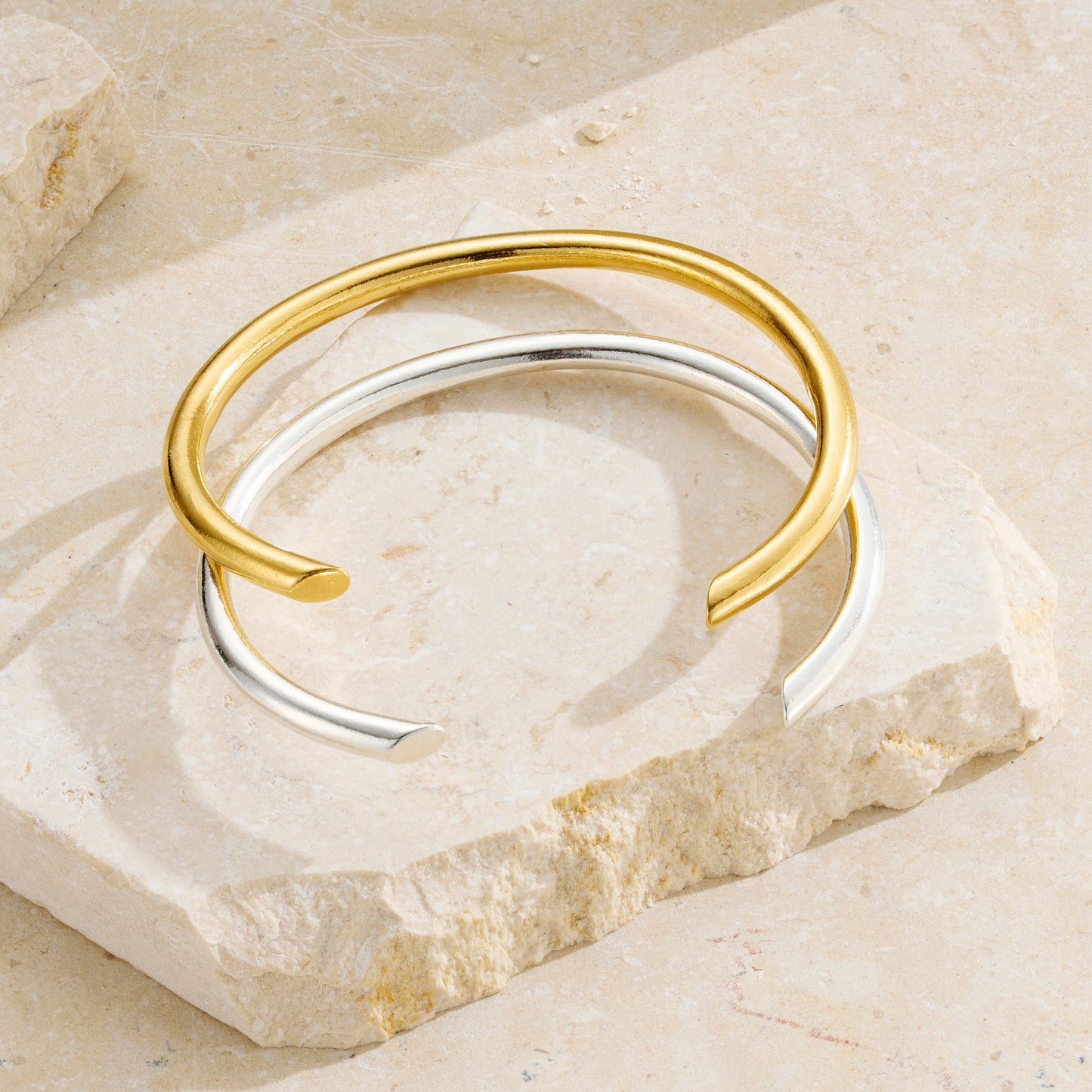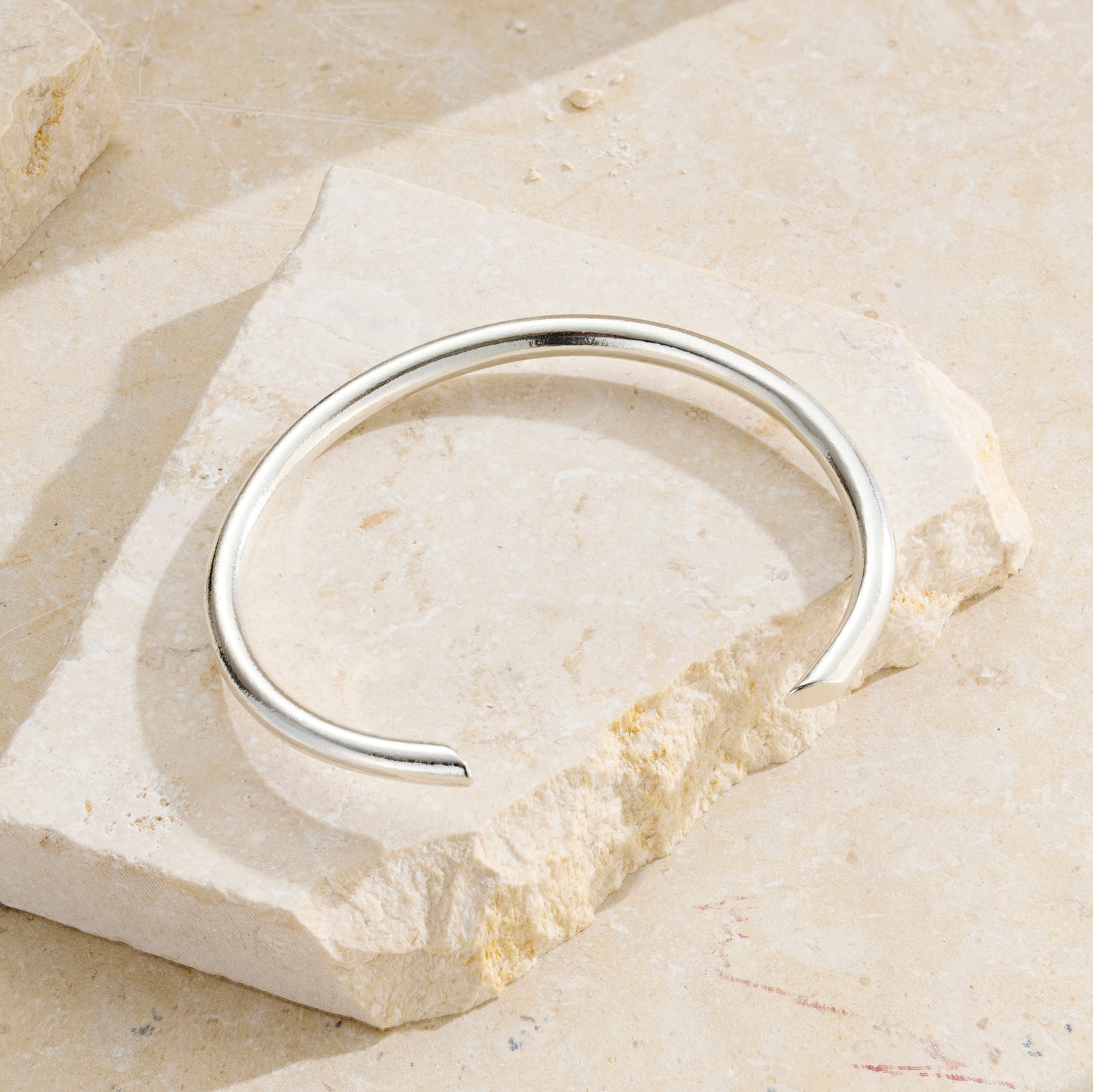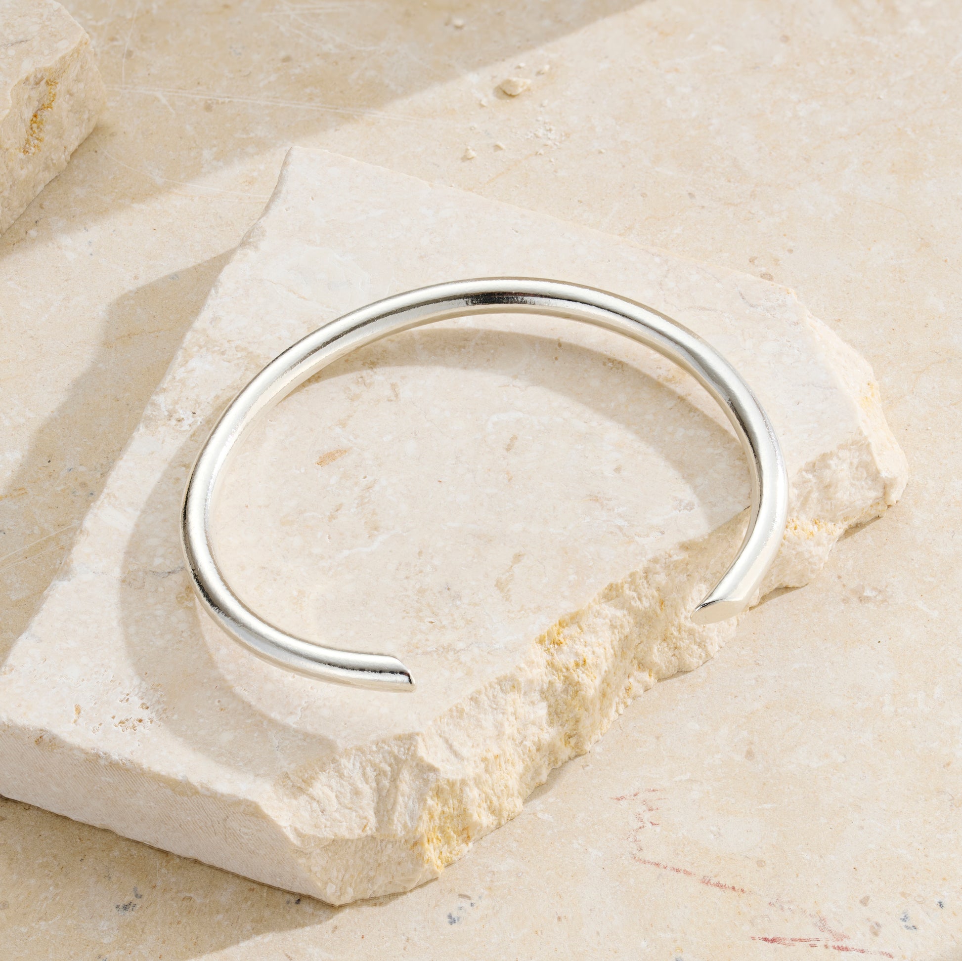 Elevate your style with this beautiful cuff, a perfect blend of elegance and personalisation. Crafted from high-quality sterling silver, this stunning bangle features a unique twist design that adds a touch ...