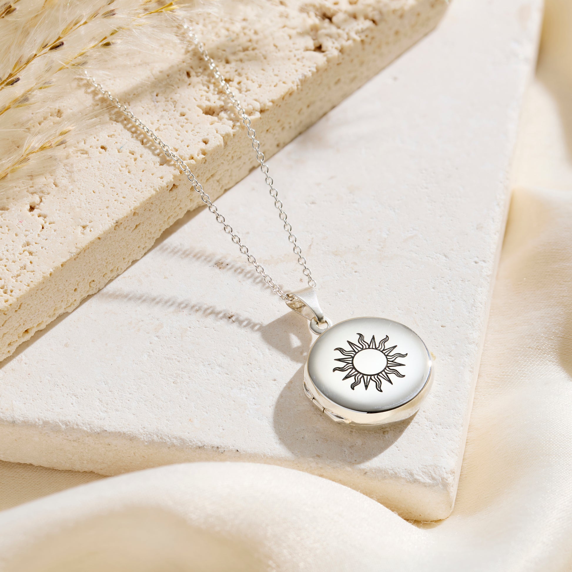 We love this gorgeous celestial inspired locket. Made from sterling silver, your locket is engraved with your chosen celestial designs. Moon & Stars or the Sun, which ever one you choose this locket is s...