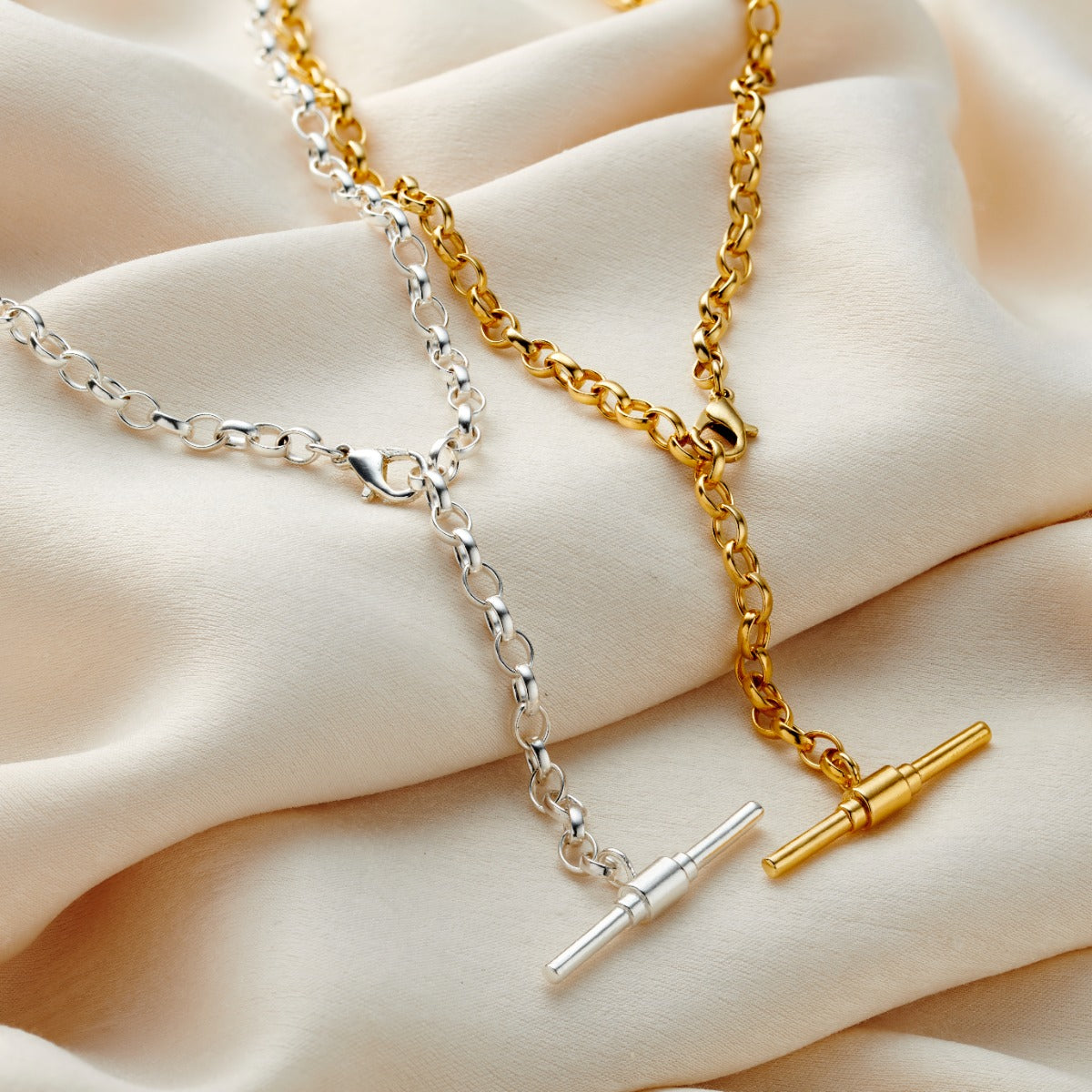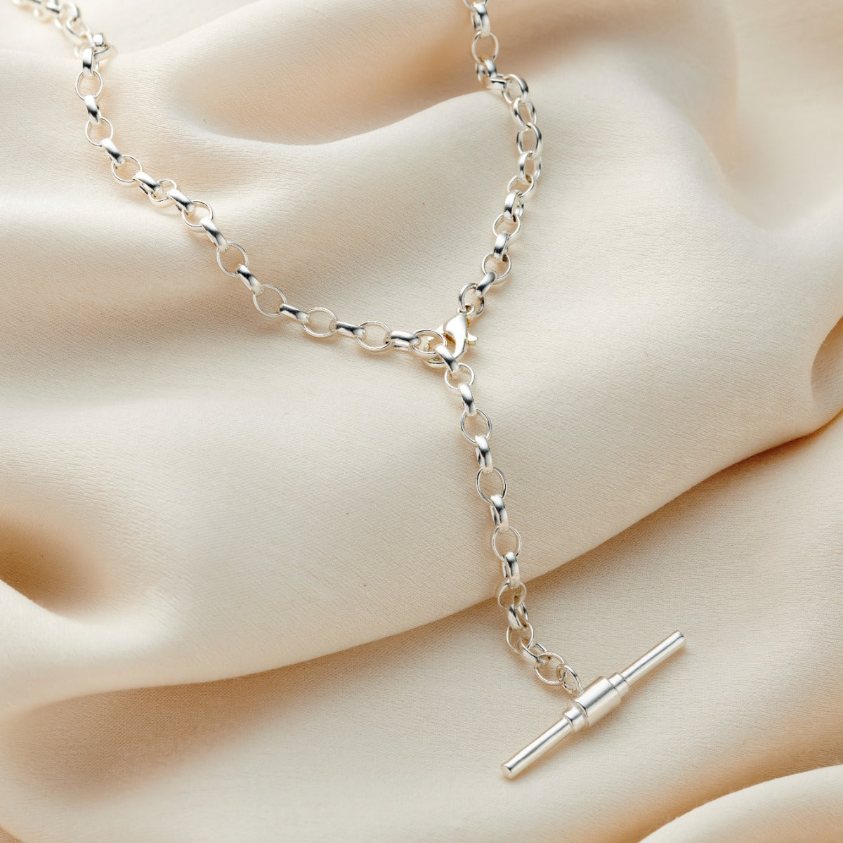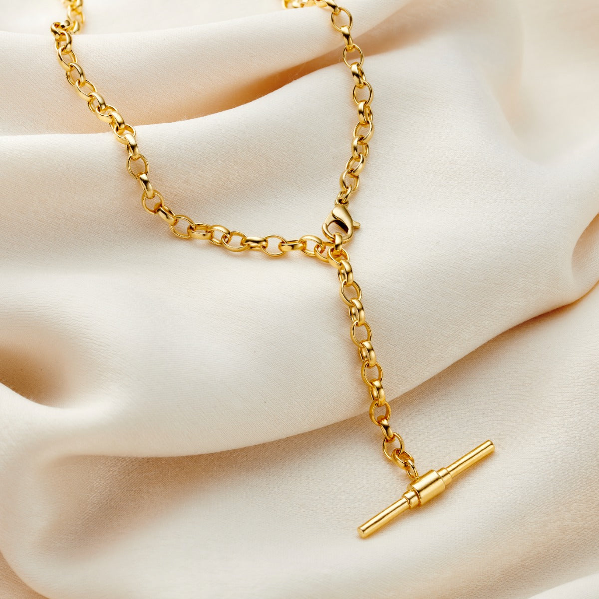 Chunky Belcher Chain T Bar Lariat Necklace