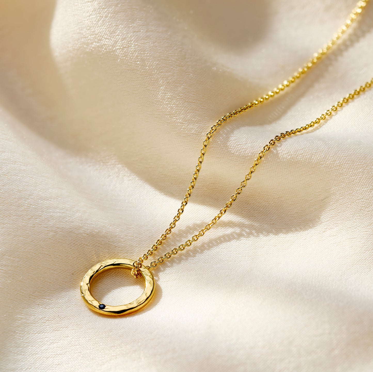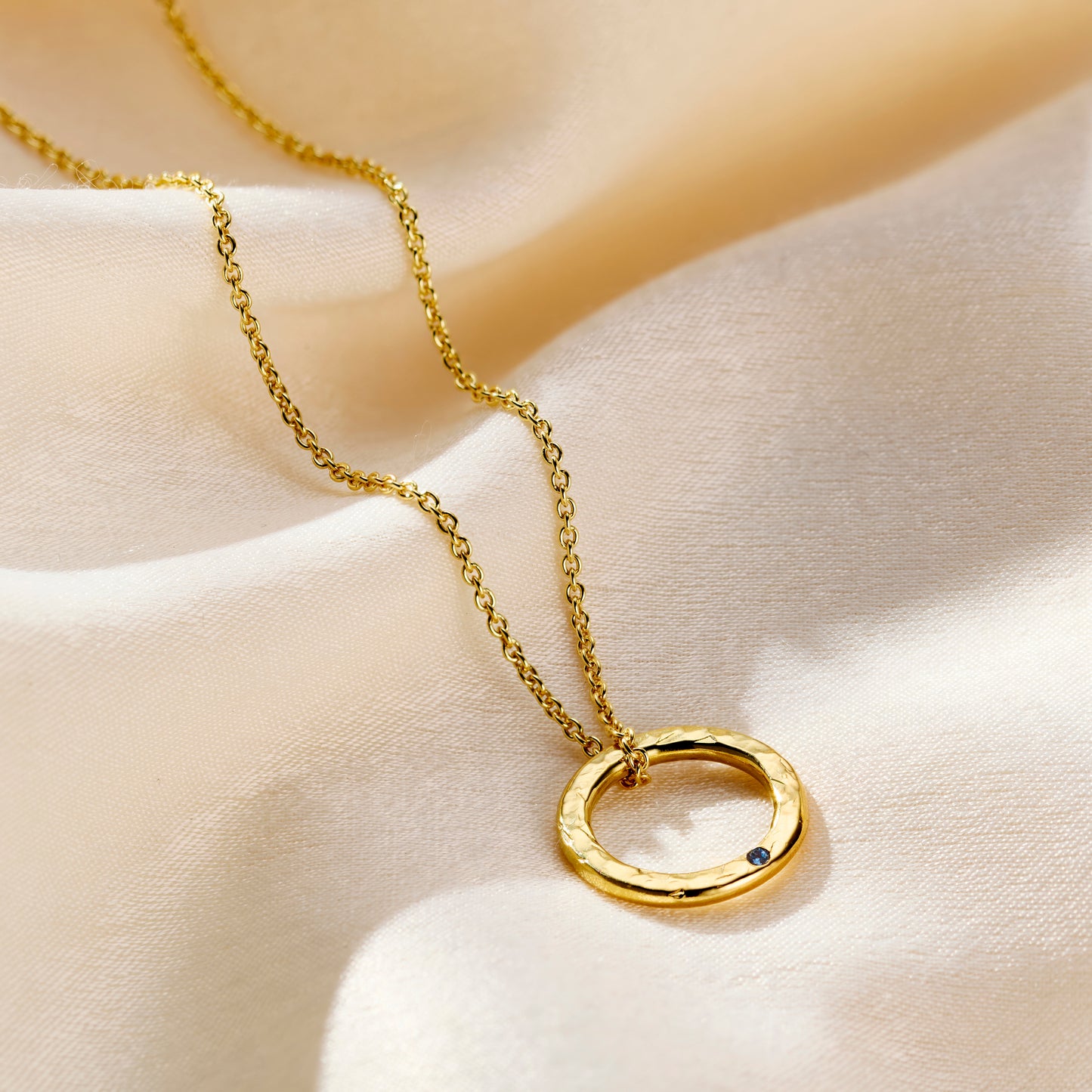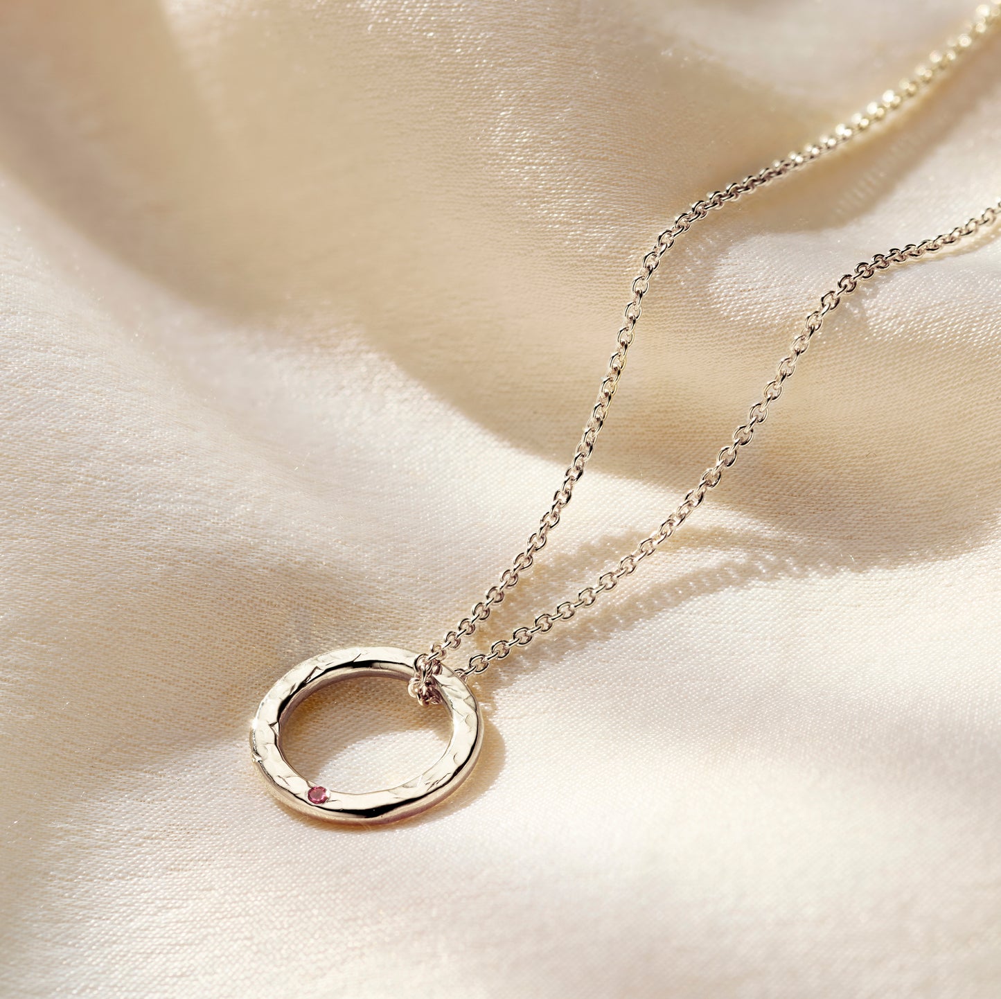 This gorgeous circle pendant necklace is beautiful finished with your chosen birthstones. Handmade in our Brighton workshop each midi message necklace features from our midi size ring charm. Our jewellers gi...