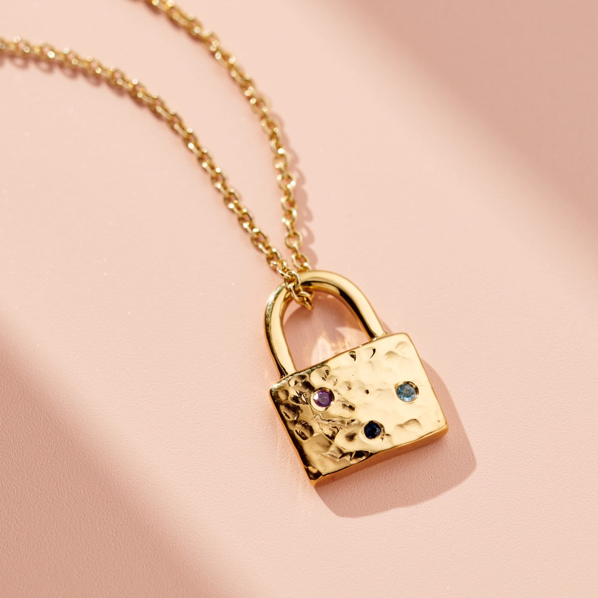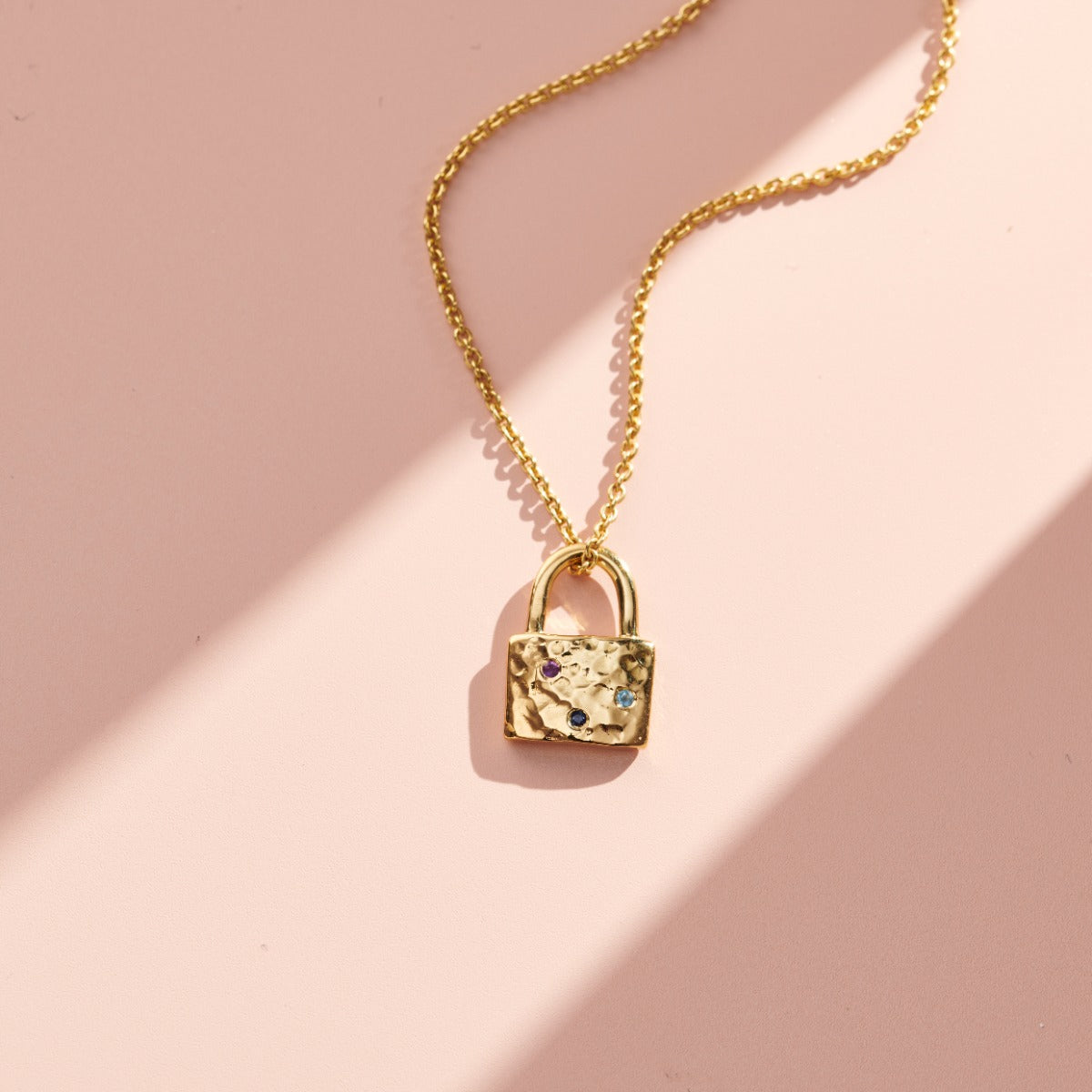 Confetti Birthstone Padlock Charm Necklace