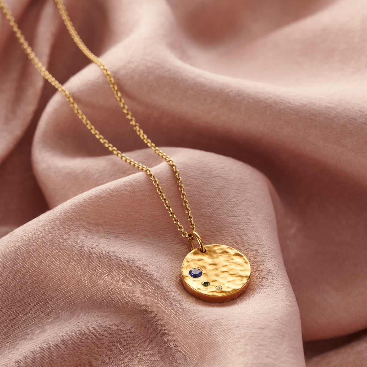 This stunning Mummy and Baby birthstone necklace is made in our Brighton workshop from Sterling Silver. The design features a textured disc charm which can be personalised with on...
