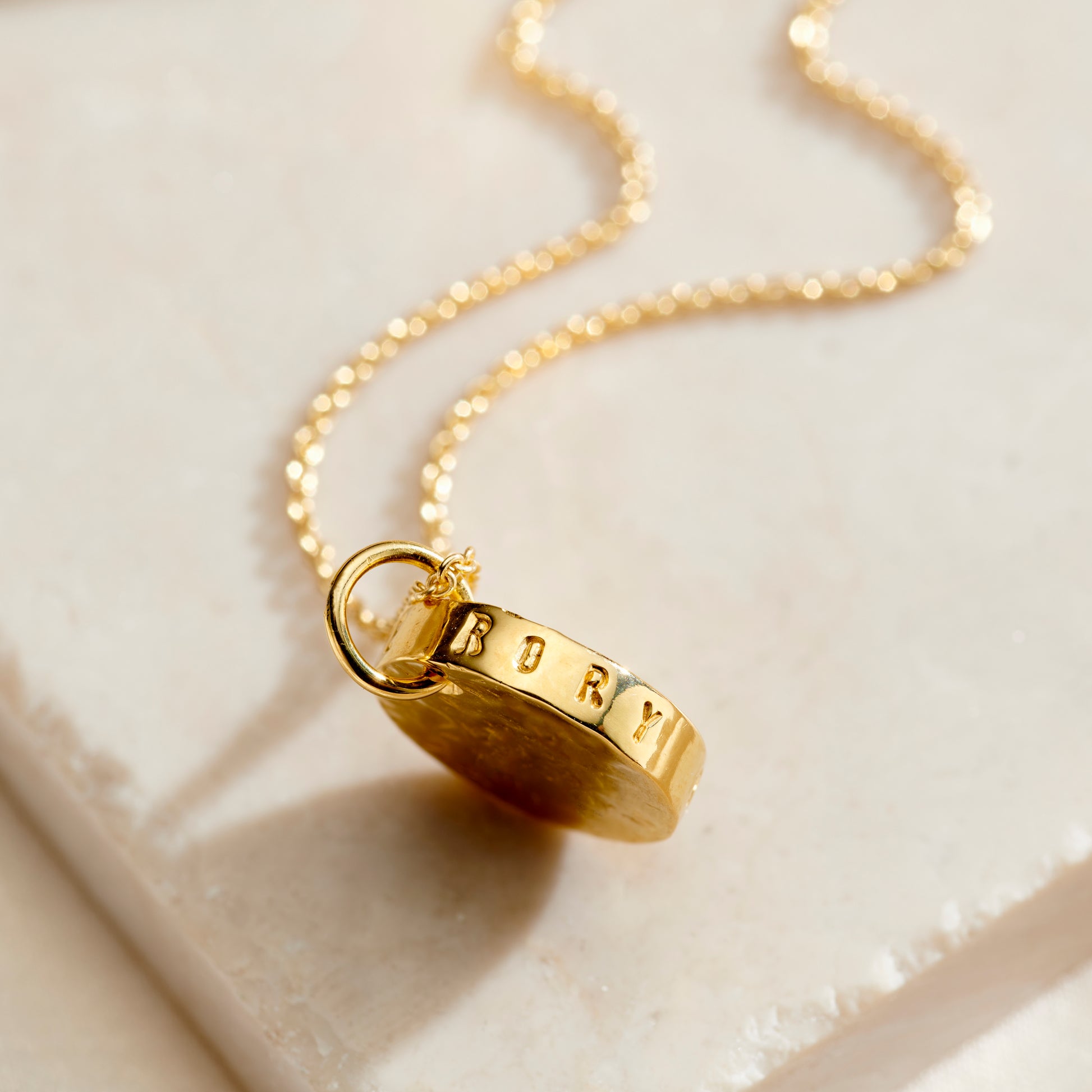 This stunning Mummy and Baby birthstone necklace is made in our Brighton workshop from Sterling Silver. The design features a textured disc charm which can be personalised with on...