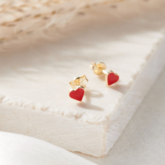 Heart 9ct Gold Stud Earrings with Cubic Zirconia