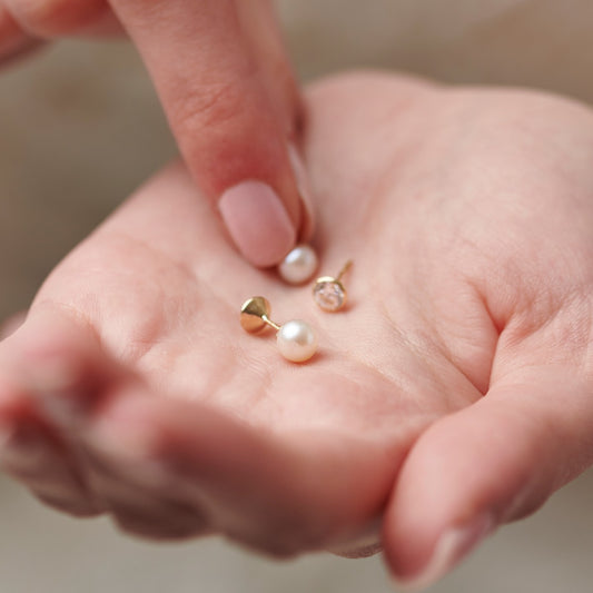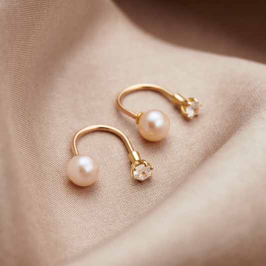 9ct Gold CZ & Hanging Pearl Stud Earrings