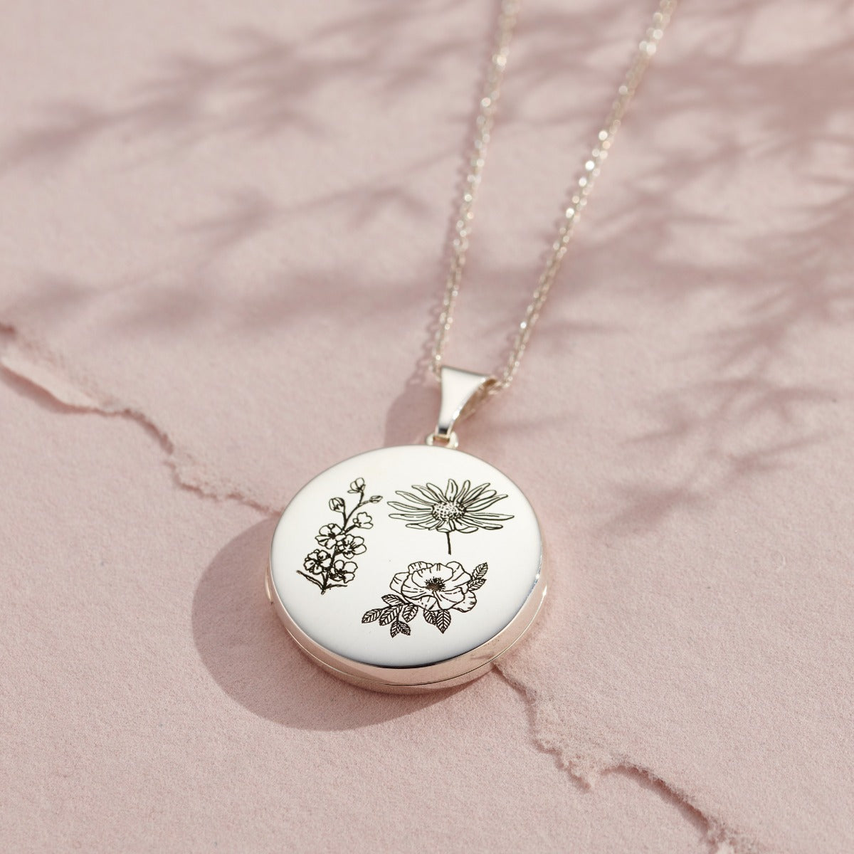 This beautiful locket is made from stunning Sterling Silver. Measuring around 1 inch across, plenty of room for our jewellers to engrave up to three birth flowers onto the front of the locket. Perfect for a ...