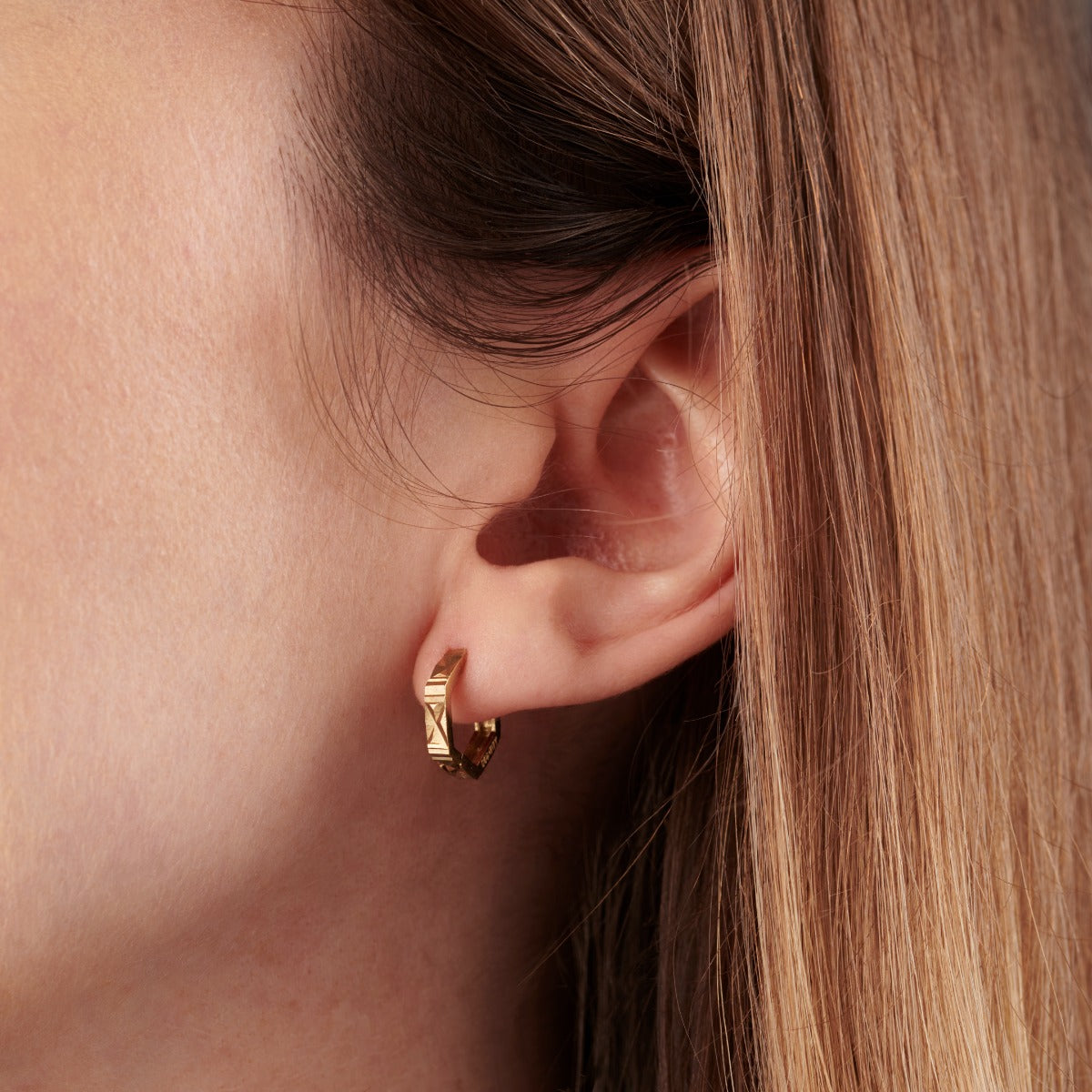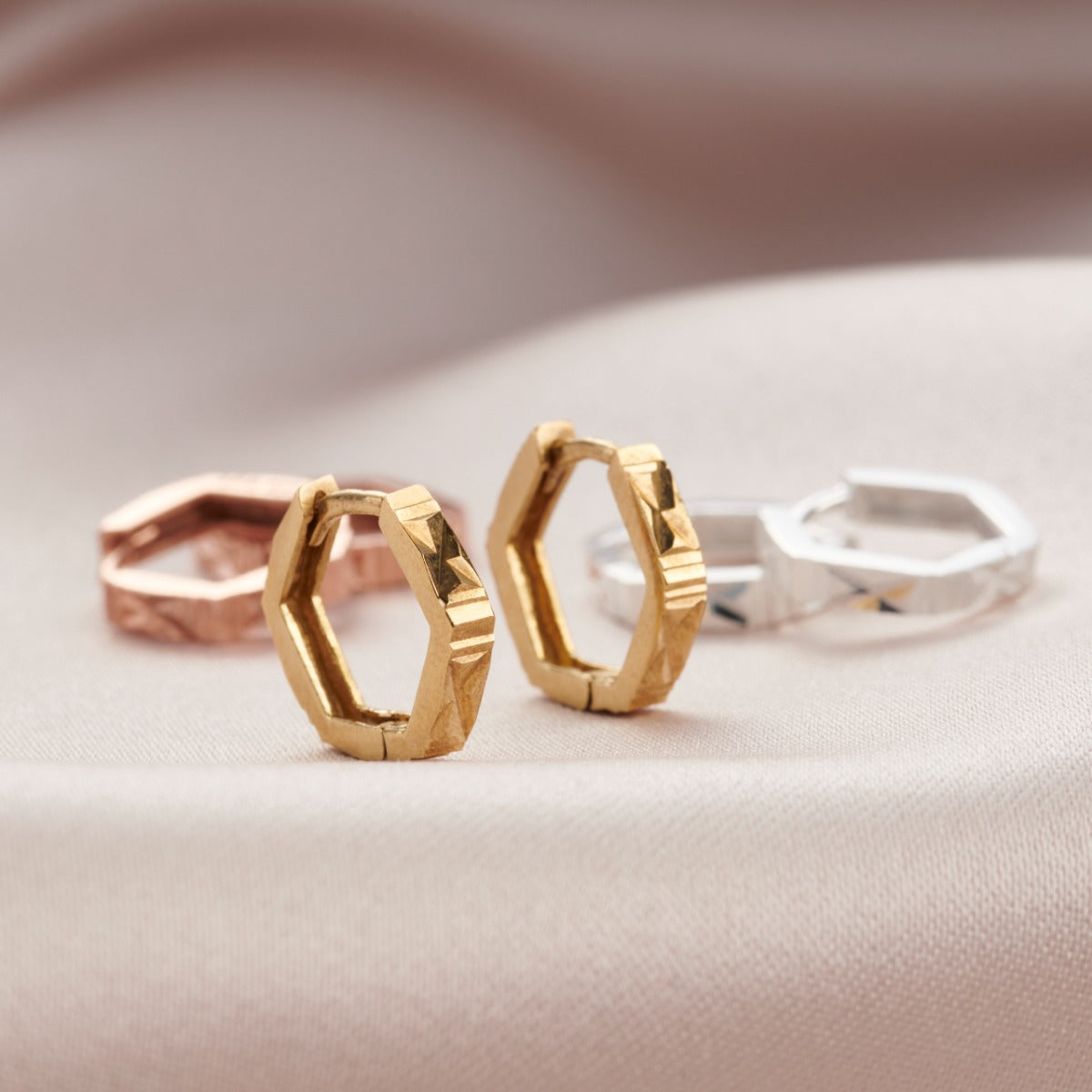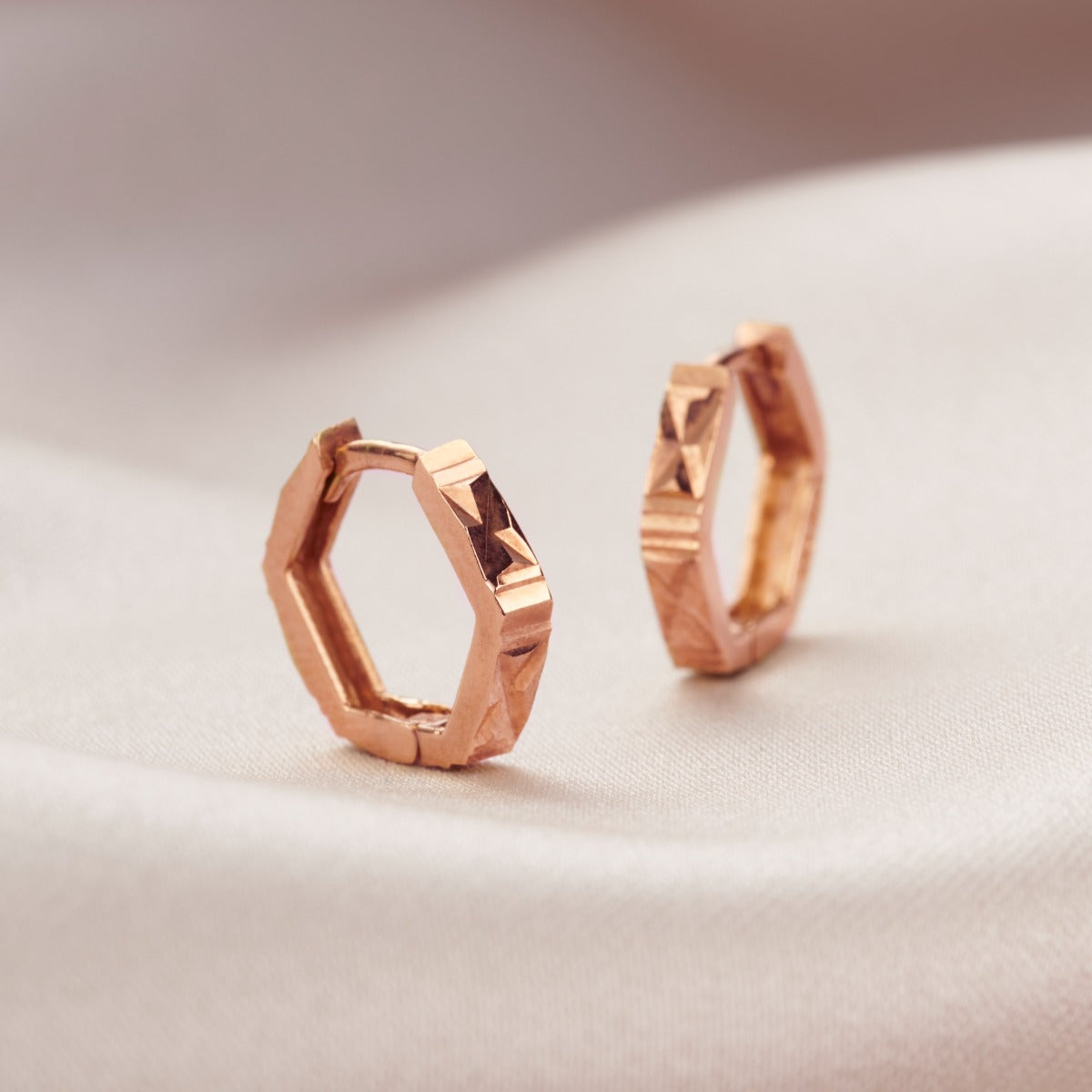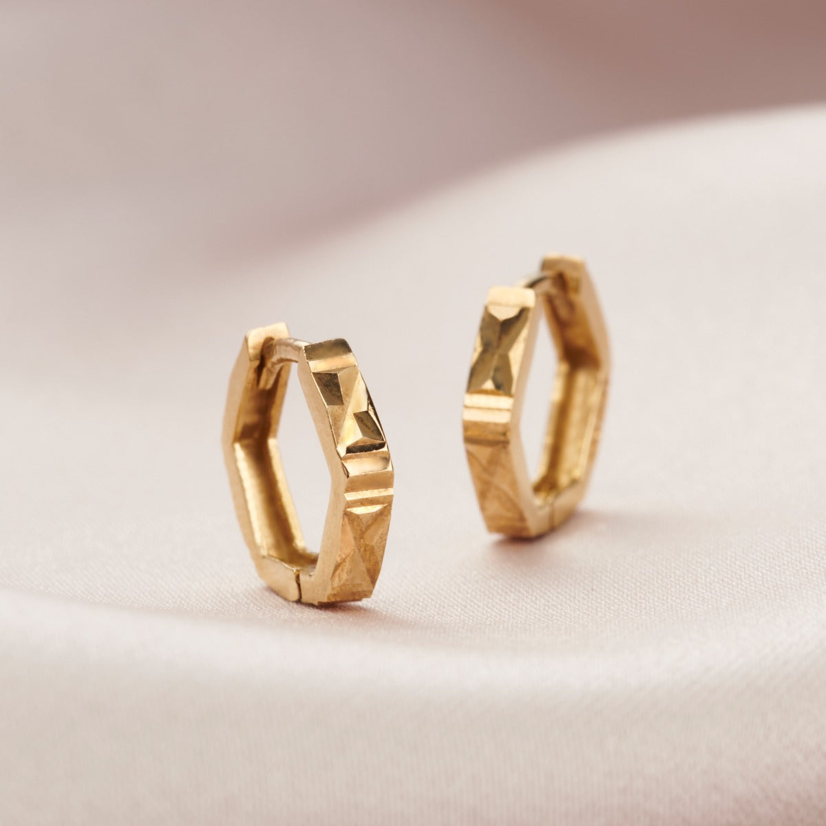 Faceted Hexagon Huggie Earrings