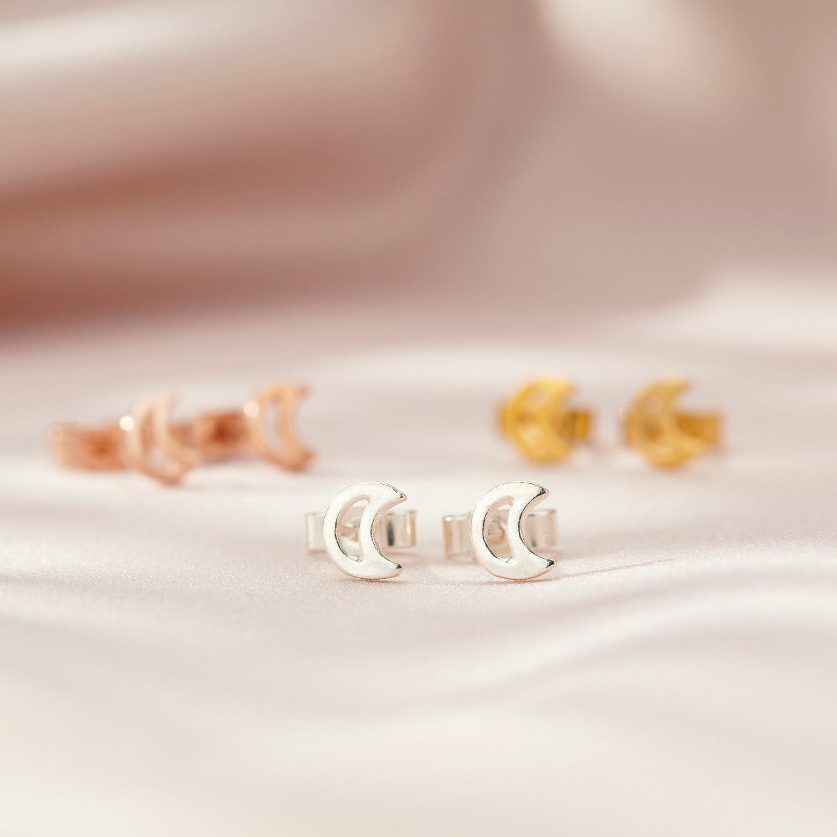 Our Fine Crescent Moon Stud Earrings add a gorgeous celestial touch to any outfit. Handcrafted in our Brighton workshop from sterling silver, the earrings feature a sleek crescent moon motif, comfortable but...