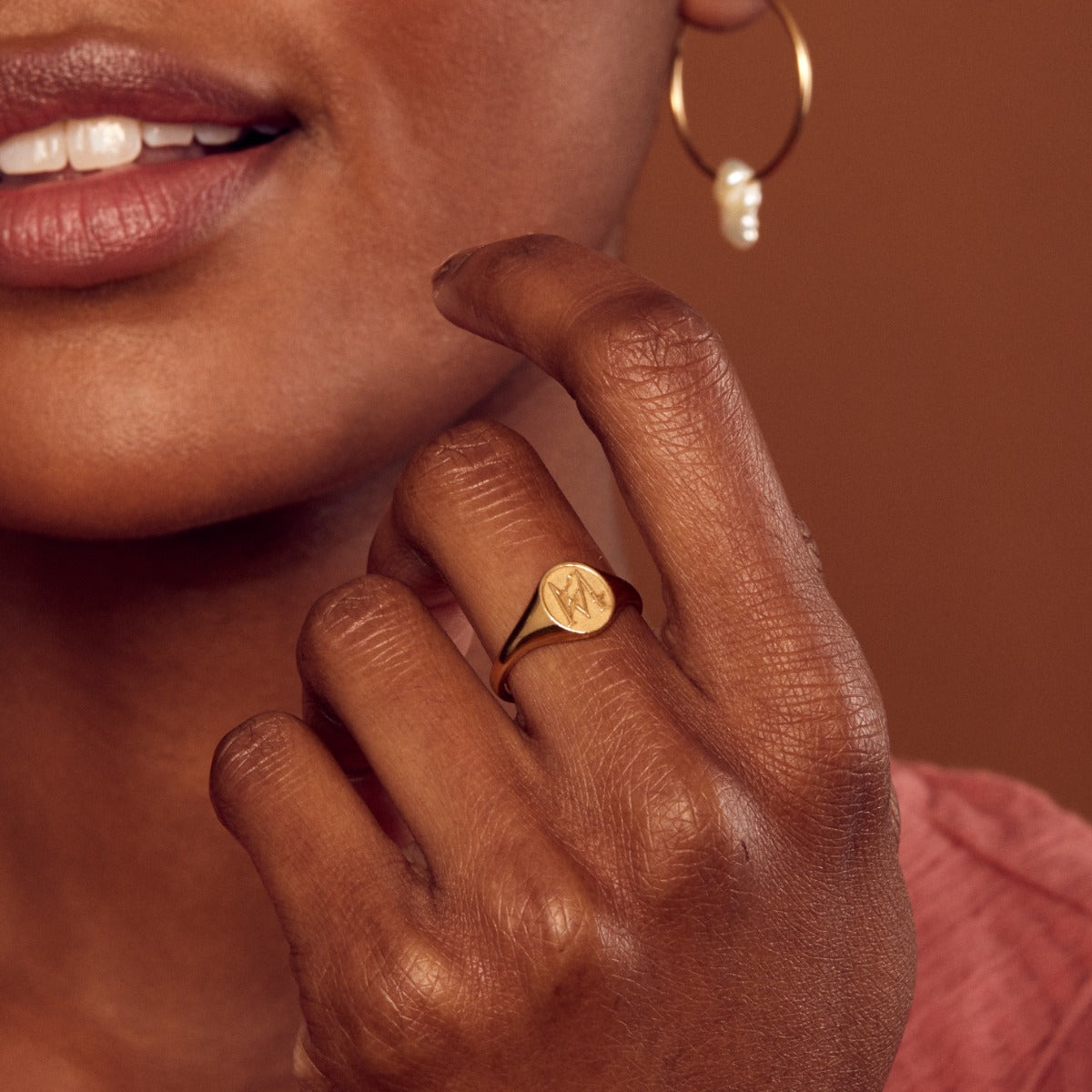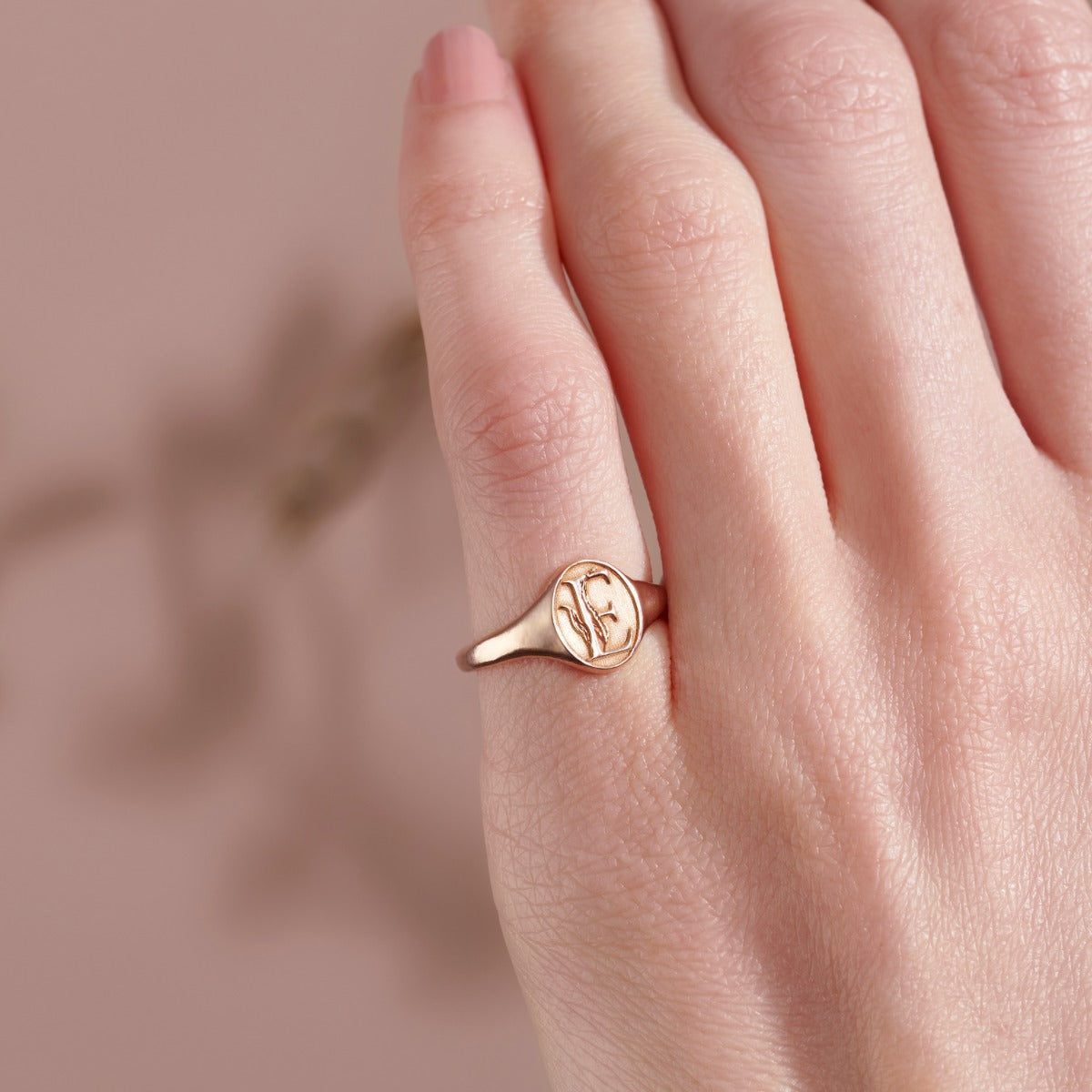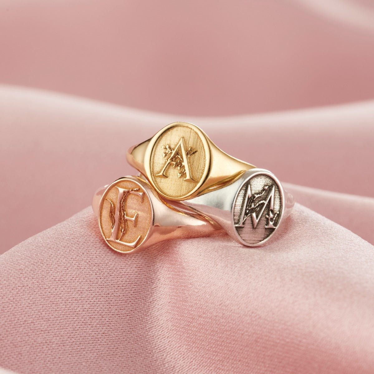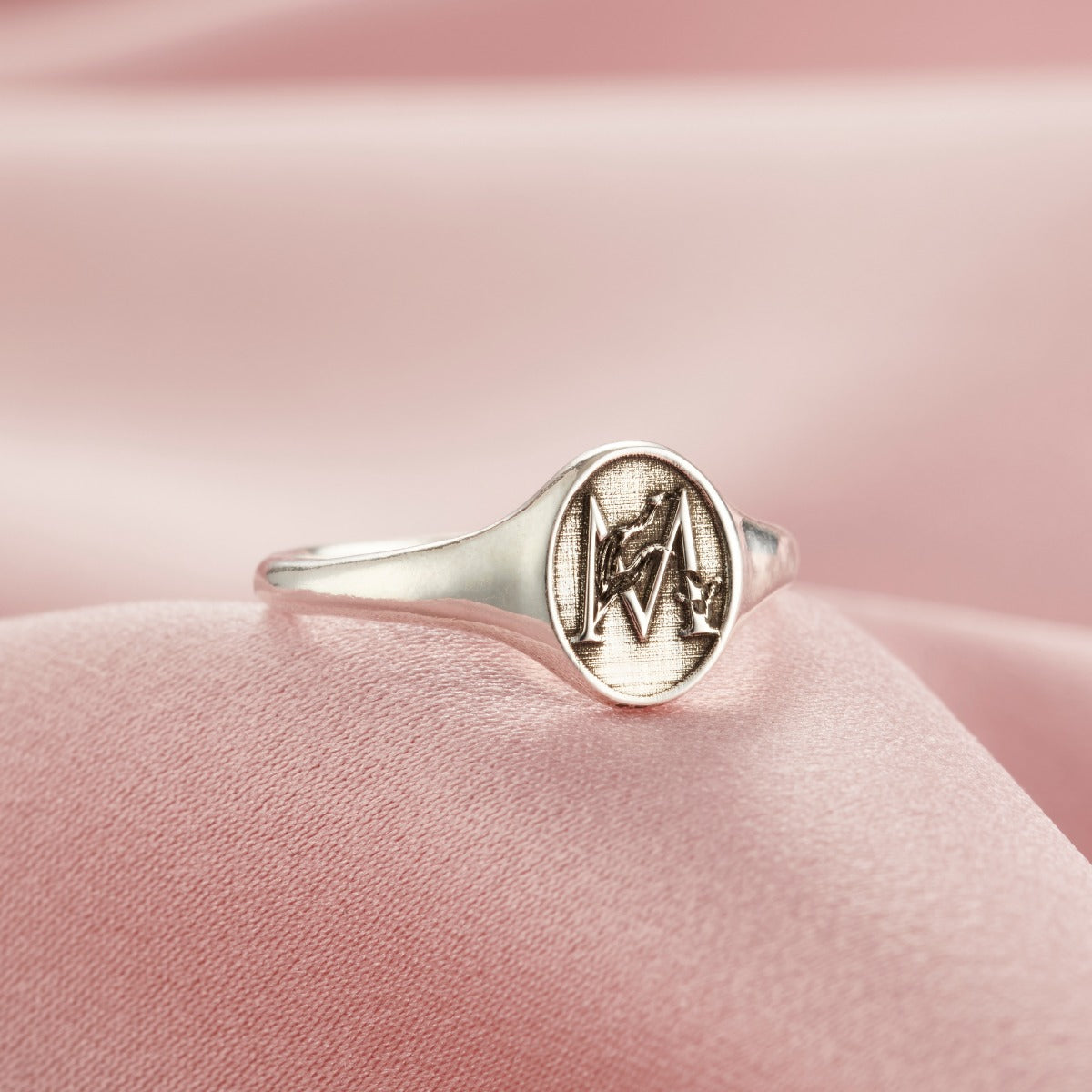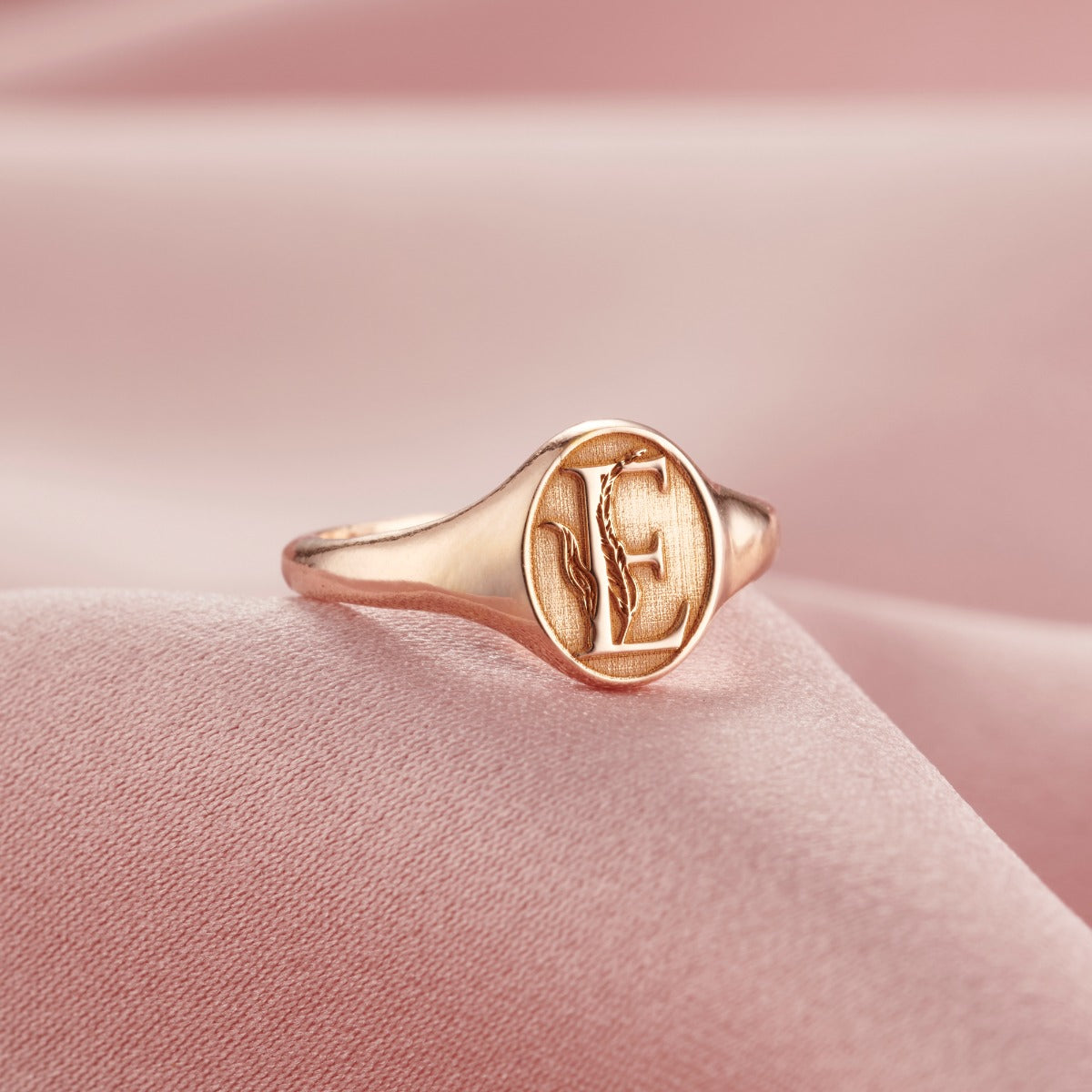 Floral Engraved Initial Signet Ring