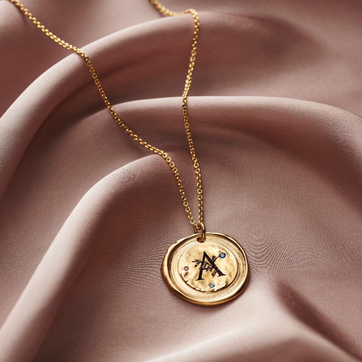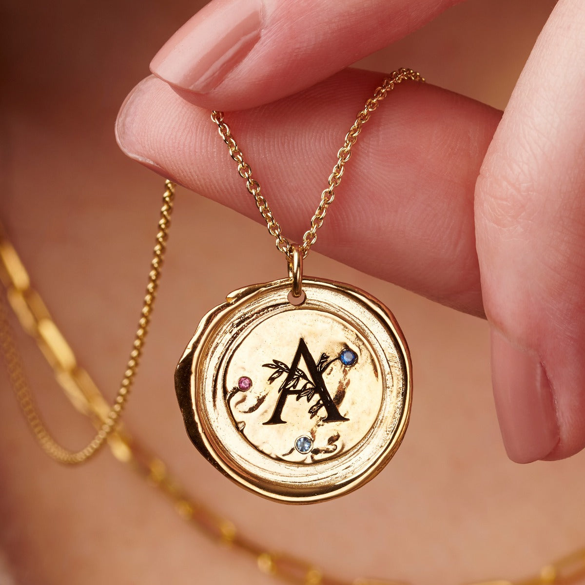 Floral Initial Wax Seal Birthstone Necklace