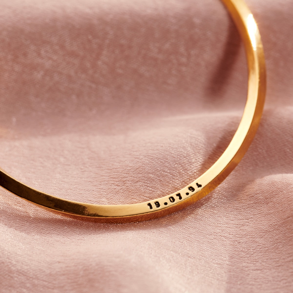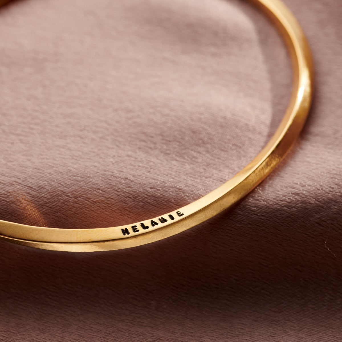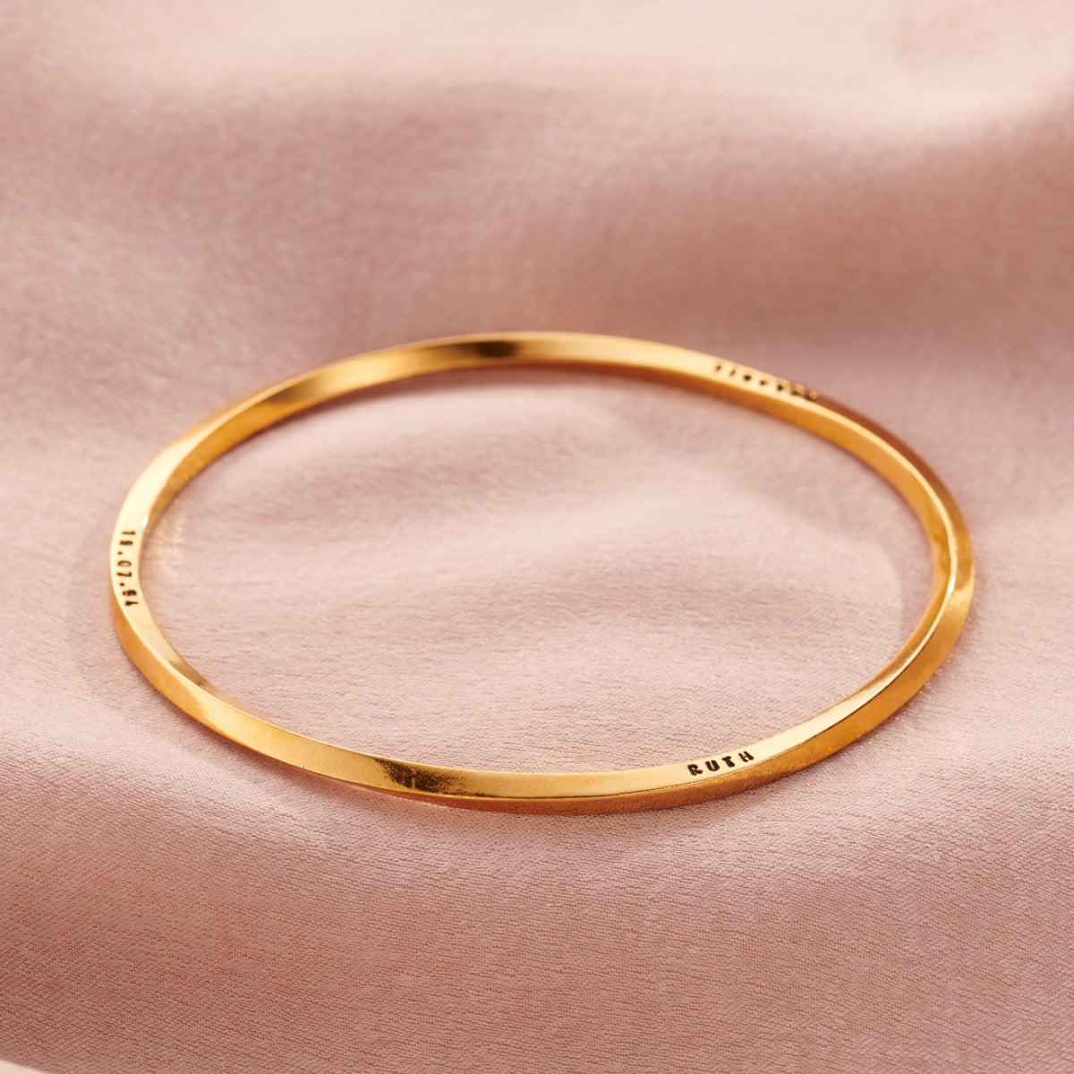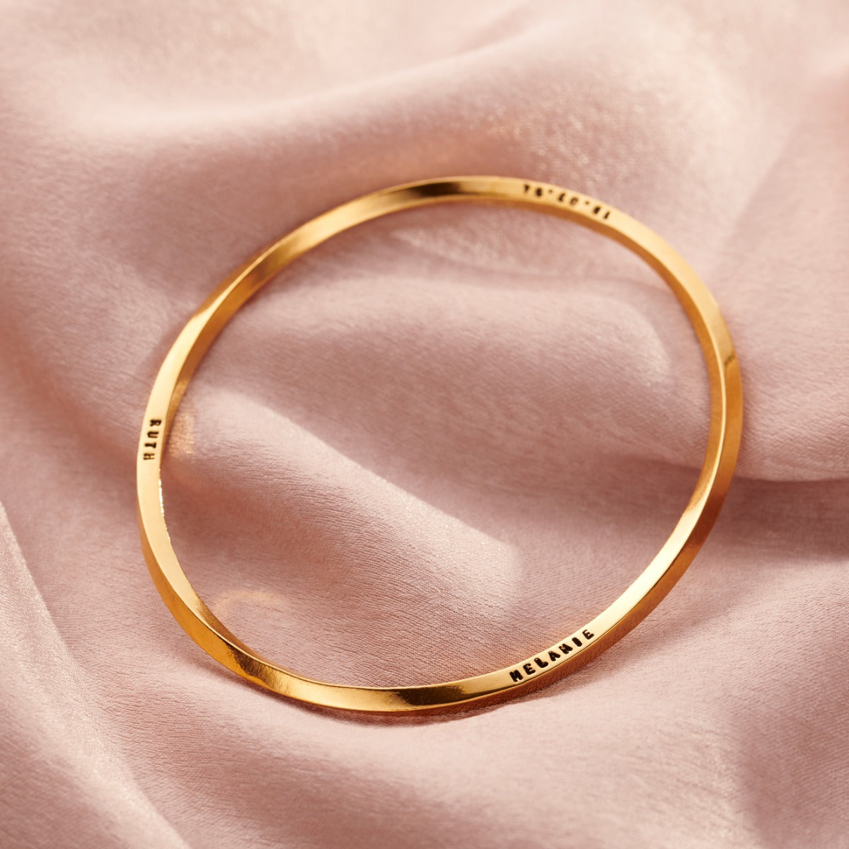Made from beautiful sterling silver by our jewellers here in Brighton, this unique bangle features a unique twisted design symbolising you're forever. This silver bangle can be personalised with up to three ...