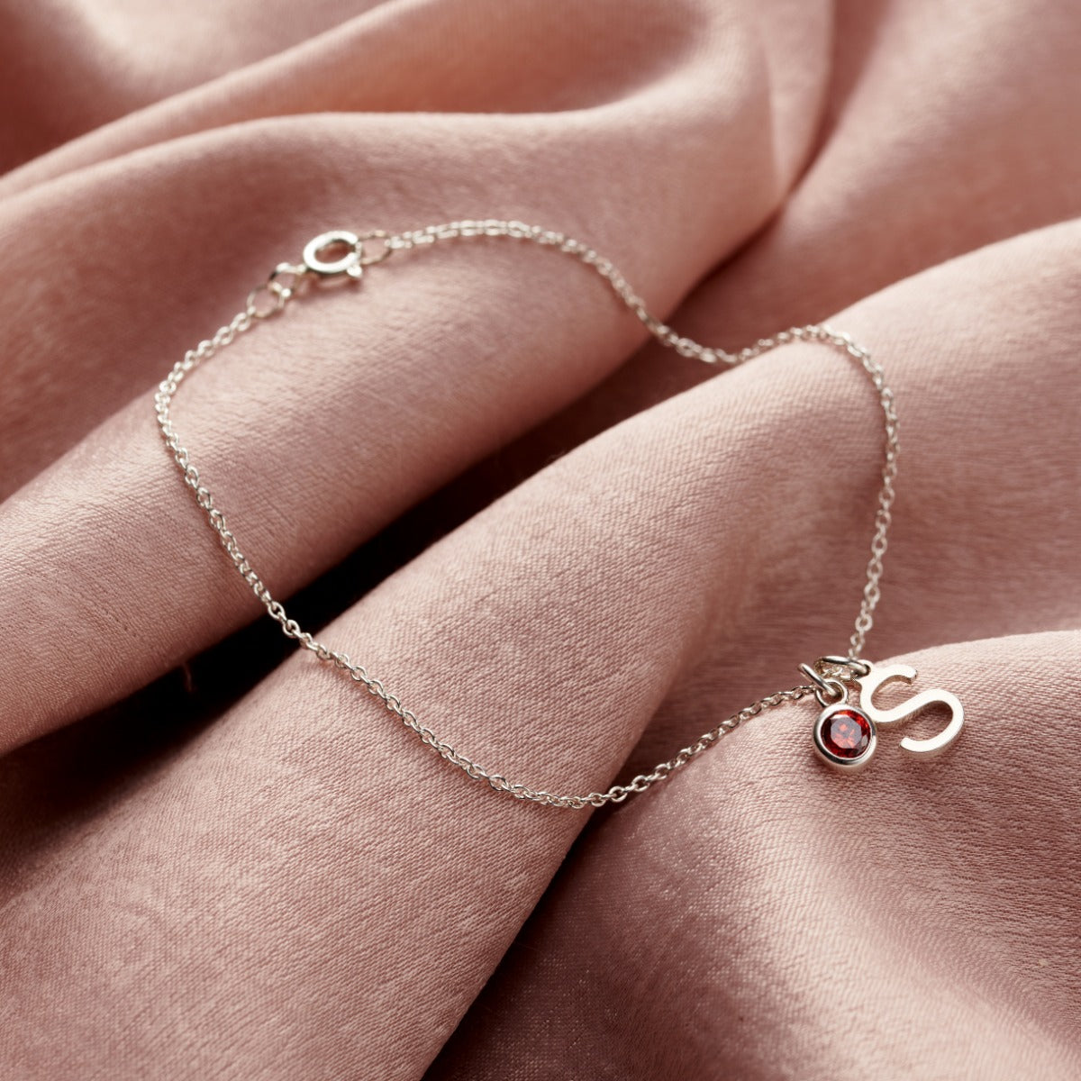 Initial Letter & Birthstone Charm Bracelet